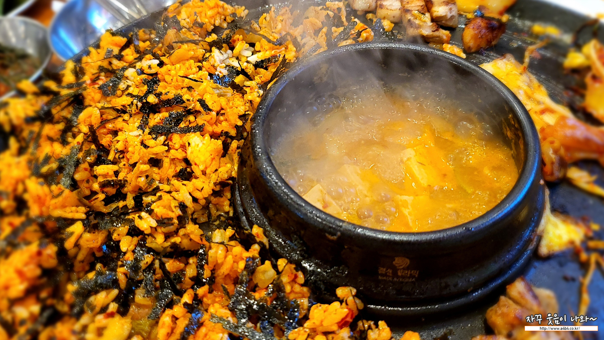 잠실새내역 맛집 효자동 솥뚜껑 잠실새내점 마무리는 볶음밥과 된장찌개로 했는데요. 볶음밥은 다른 메뉴에 비해서는 상대적으로 아쉬운 맛을 보였습니다. 조금 뻣뻣한 맛이라고 할까요.