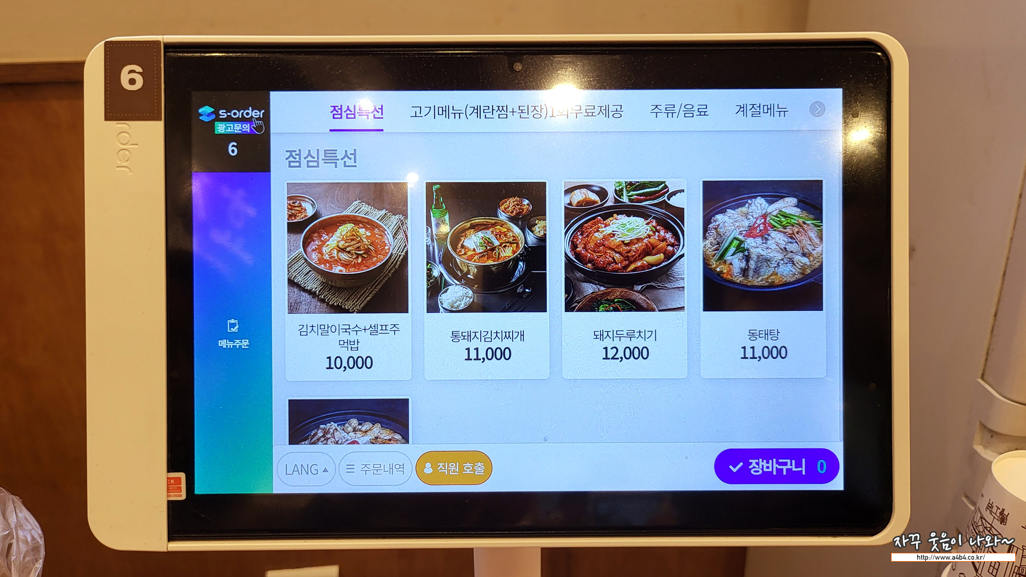 잠실맛집 효자동 솥뚜껑 잠실새내점 점심특선으로는 1만원 전후의 단품 식사들을 만날 수 있습니다. 통돼지김치찌개, 돼지두루치기, 동태탕 등이 있는데요.