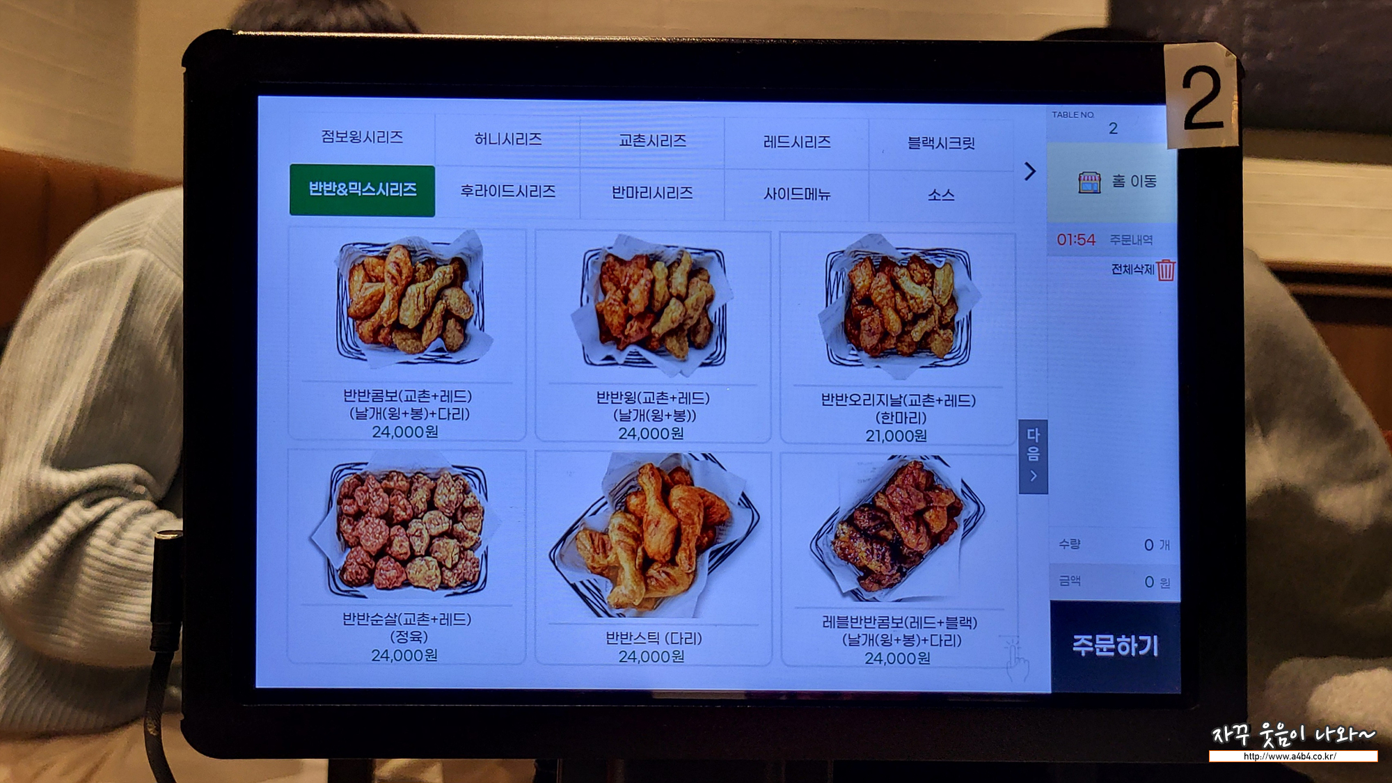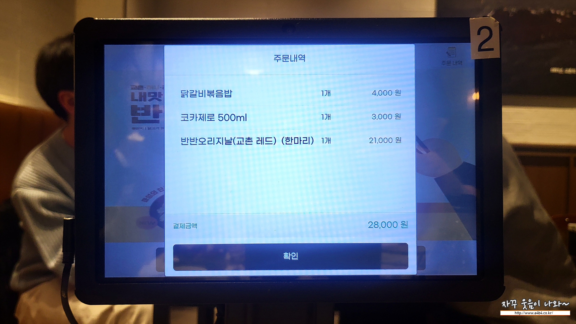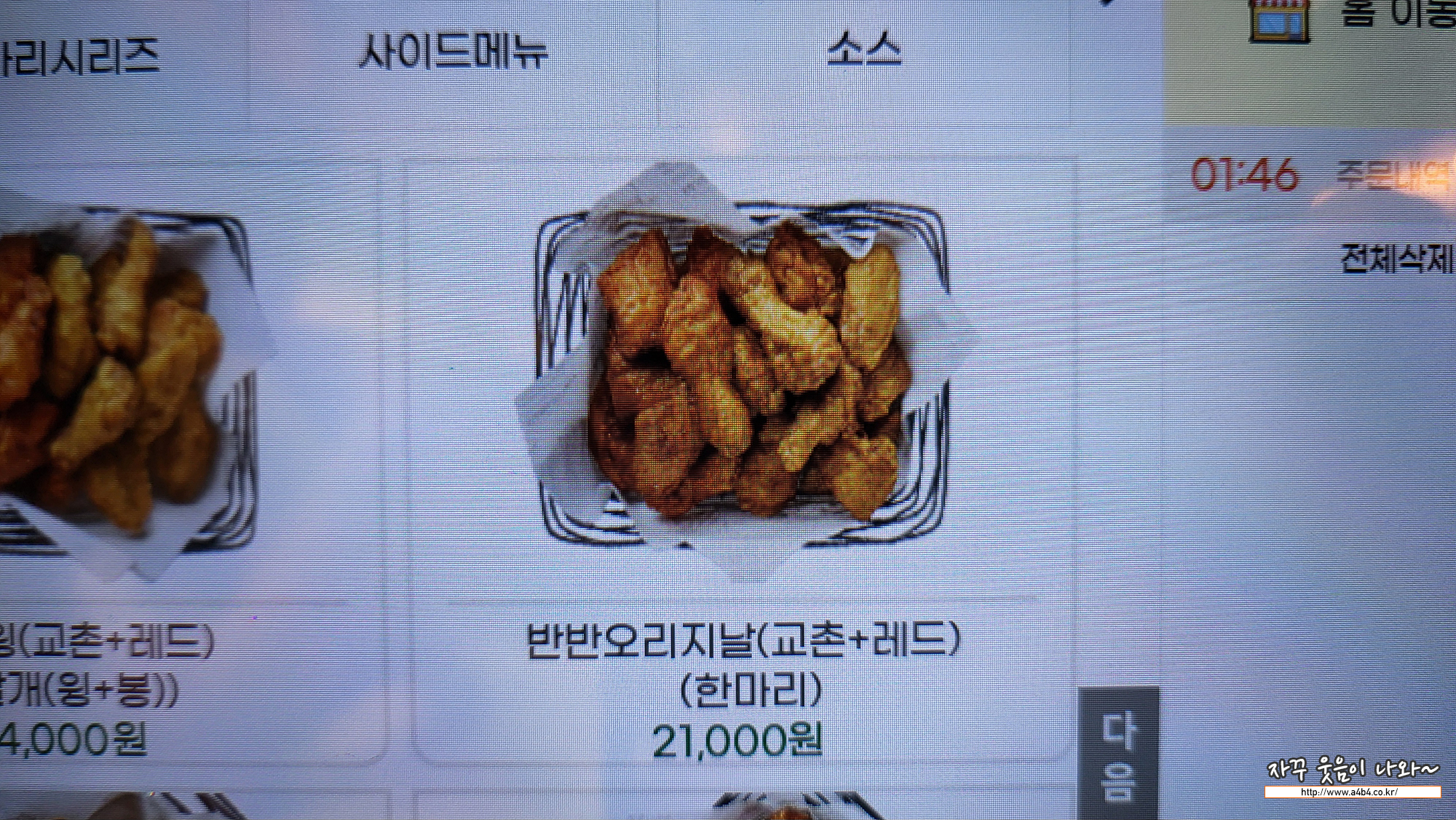 먼저 저희는 교촌 반반오리지널 한미라 (21,000원) 와 코카콜라 제로먼저 주문합니다.
