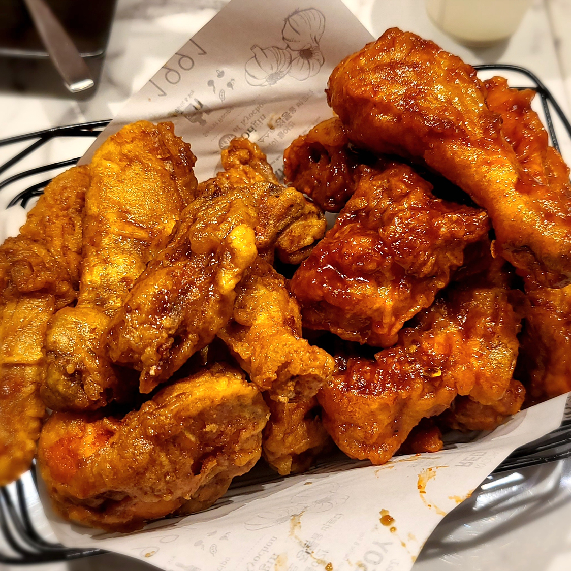 교촌오리널 입니다. 교촌의 시그니처 메뉴인 마늘과 간장소스로 만든 치킨인데요. 단짠단짠짠 맛을 보여주네요.