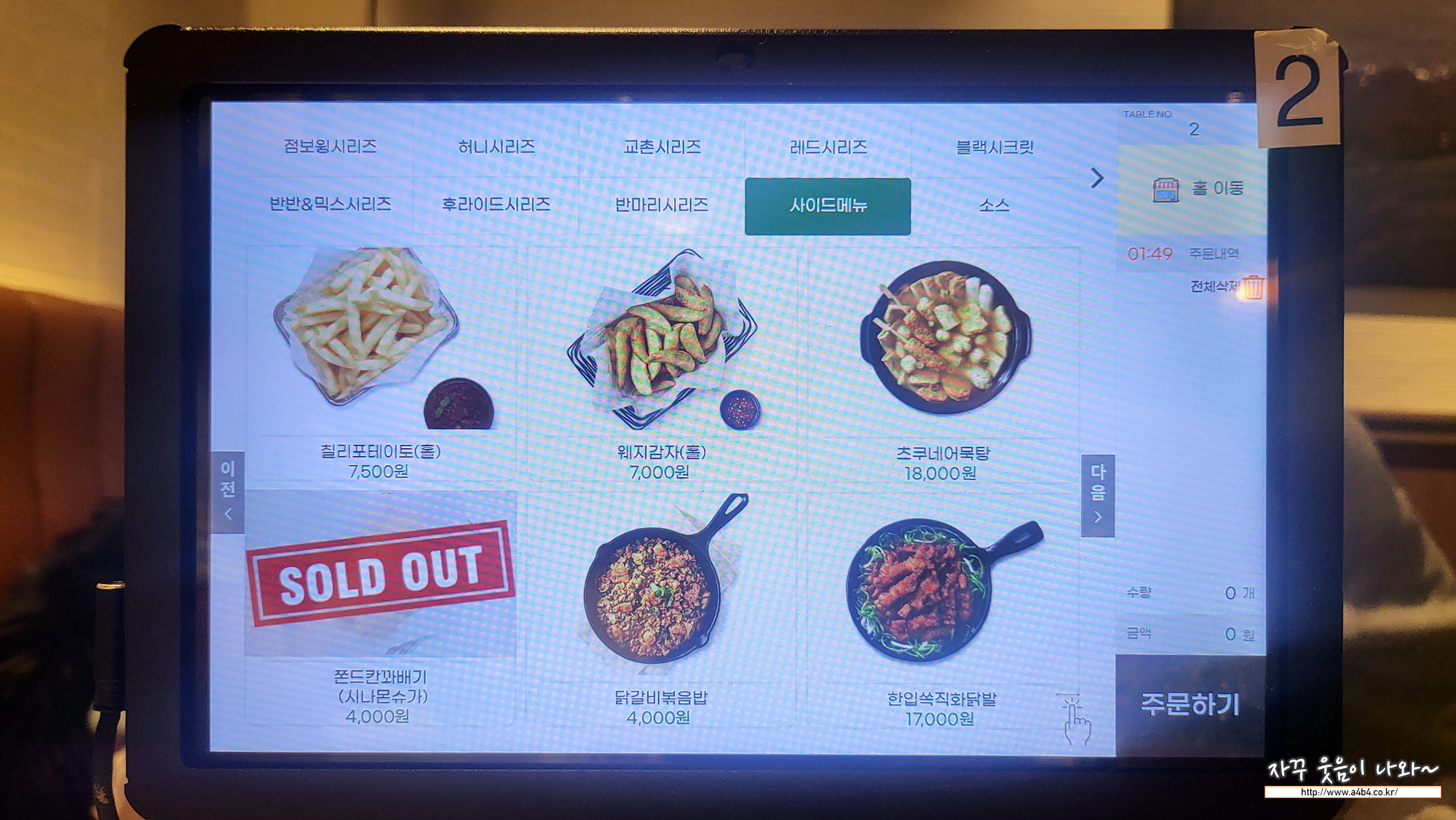 신기하게도 치킨집에 볶음밥과 떡볶이, 어묵탕, 샐러드가 사이드메뉴로 주문할 수 있습니다.