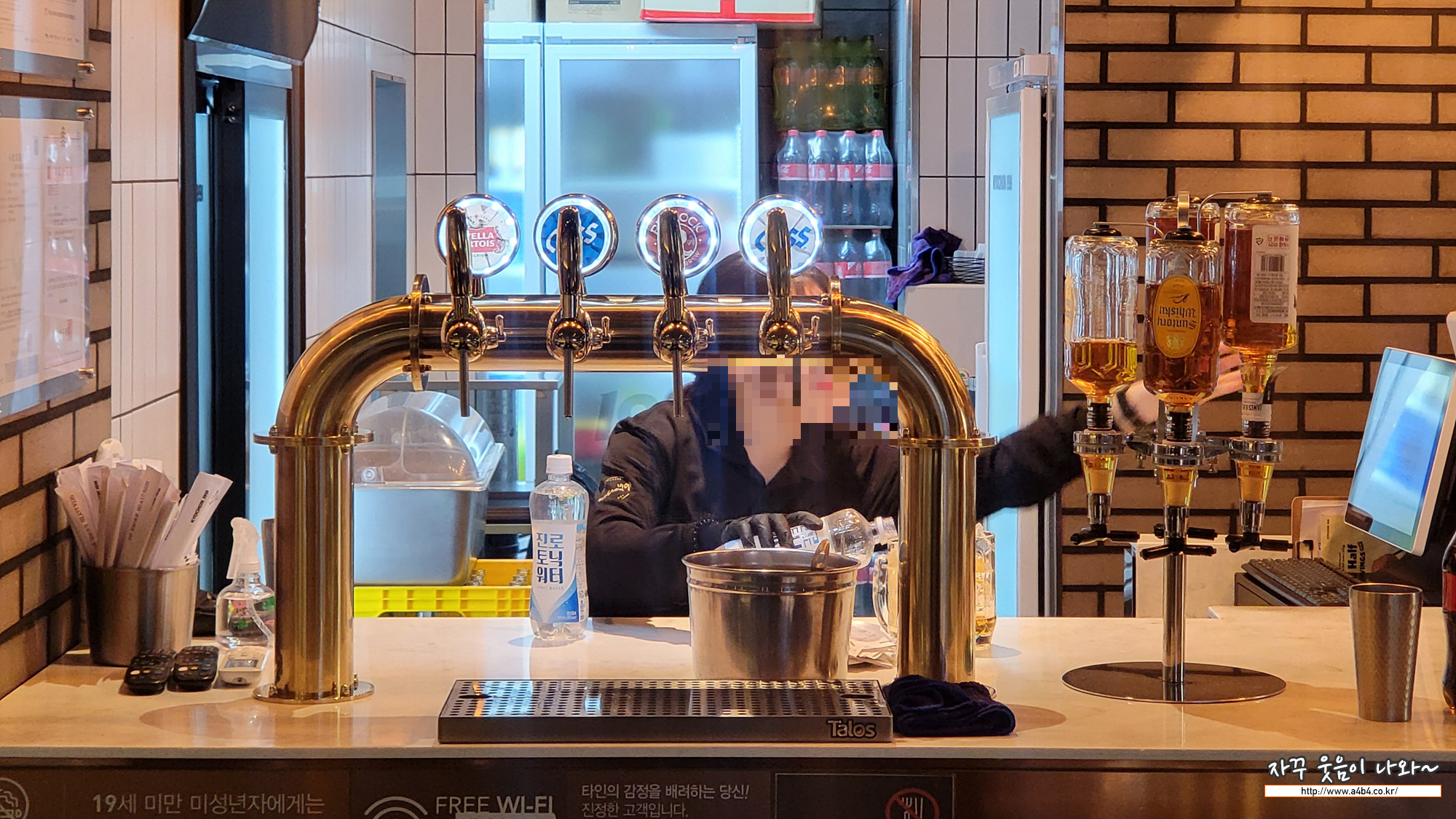 다만 천장이 높고 홀이 넓다보니, 엄청 시끄럽습니다. 금요일 저녁이어서 치맥하시는 분들이 많았는데요. 조용히 대화는 불가능한 분위기네요. 홀이 넓다보니 시끄러운 소리가 더욱 더 울리더라는...