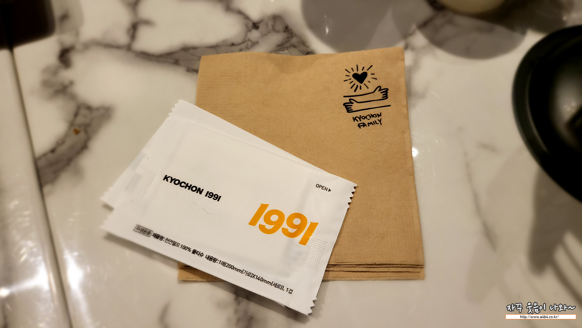 1991 교촌치킨 잠실2호점 셀프코너에서는 물과 종이컵, 비닐 위생장갑은 셀프입니다. 이외에도 접시나 추가 포코, 냅킨, 물티슈 등도 셀프코너에서 가져다 사용하실 수 있습니다. 그리고 무엇보다도 1991 교촌치킨 잠실2호점에서 마음에 드는 부분은...