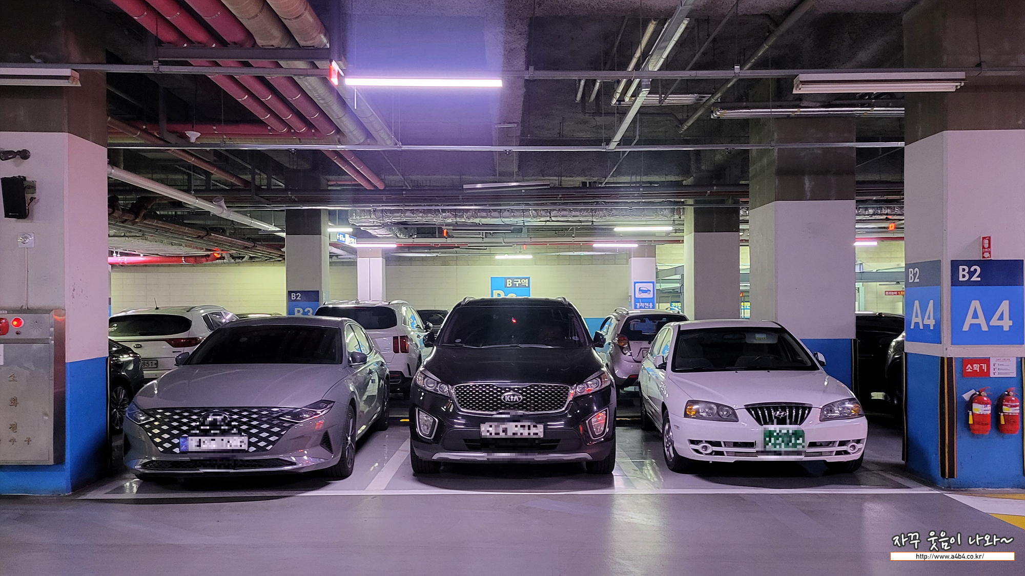 지하 주차장은 깔끔하게 잘 정비되어 운영되고 있습니다. 주차장 간격도 여유가 있어 중형 차량이 주차하기에도 큰 어려움이 없습니다.