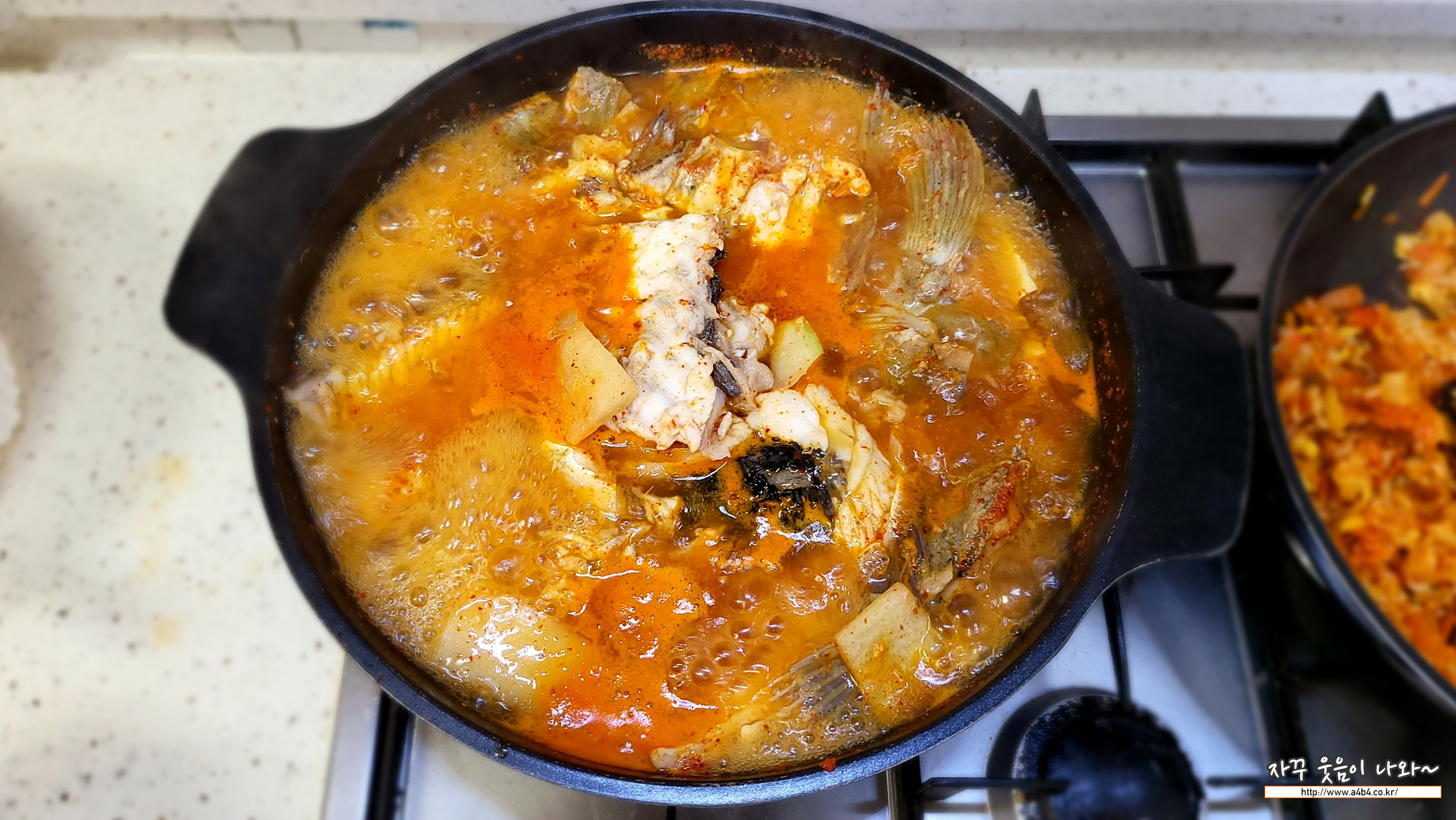 포장에 물을 넣고 팔팔 끓여서 먹었습니다. 맵기도 적당하고 생선살도 많고. 매운탕은 아주 만족했습니다.