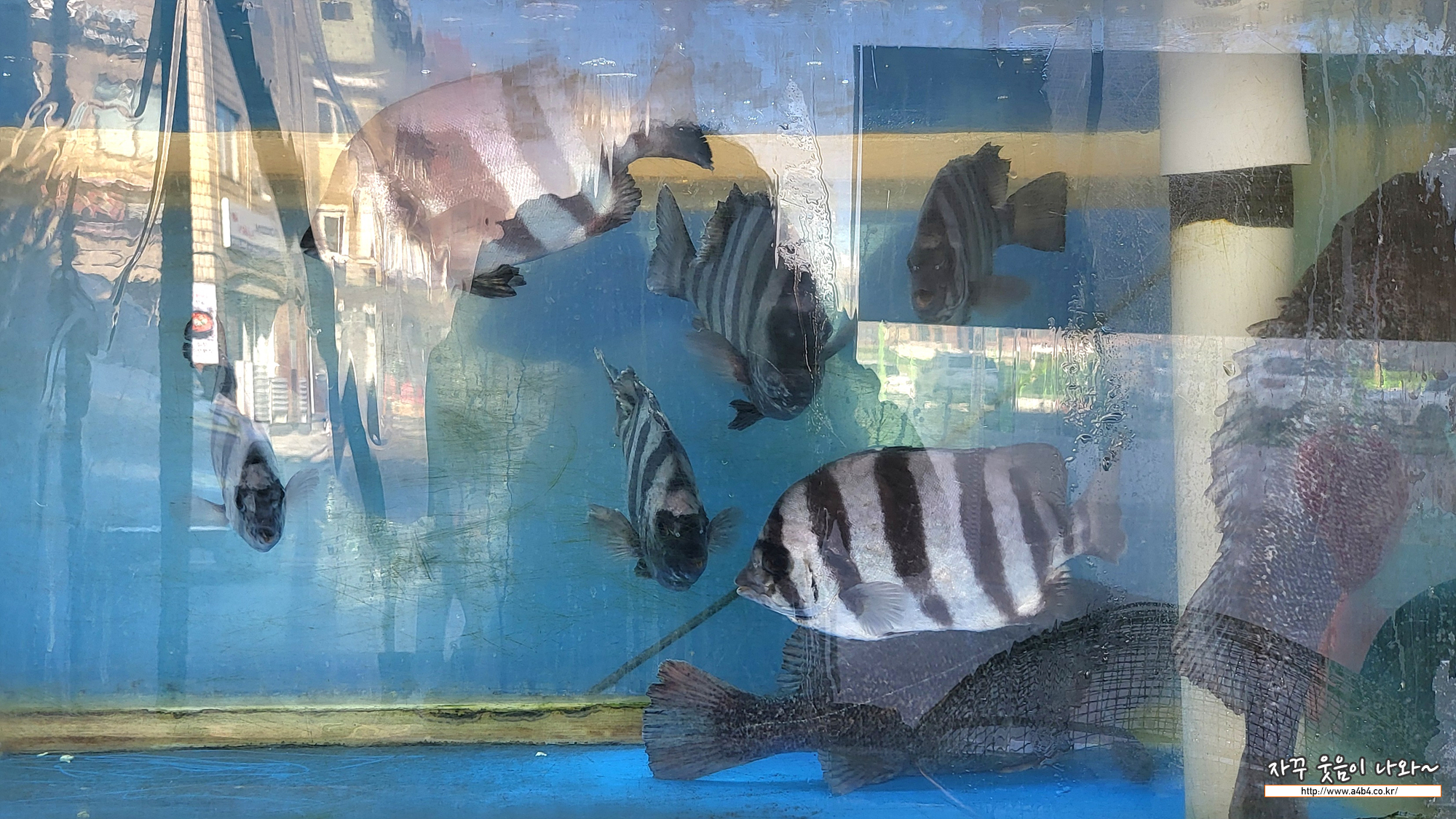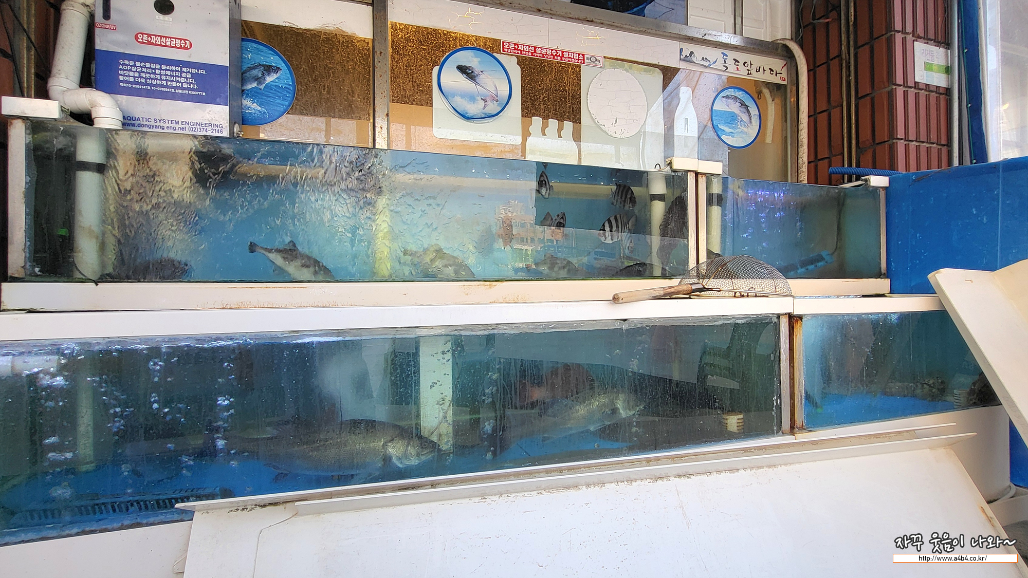 매장 앞 수조에는 줄돔, 우럭, 광어, 쥐놀래미, 도미, 농어등이 보이네요. 생선 횟감들은 팔팔해 보입니다.