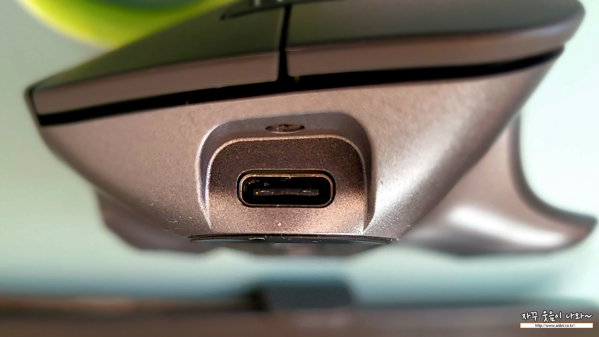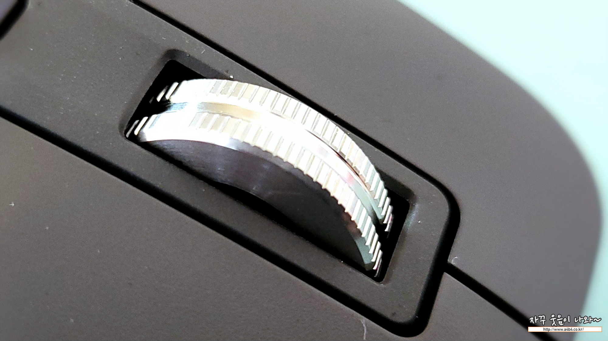충전중에는 이렇게 가로휠 옆에 램프에서 충전중 - 충전완료 표시되며, 충전하면서 마우스 사용이 가능합니다.