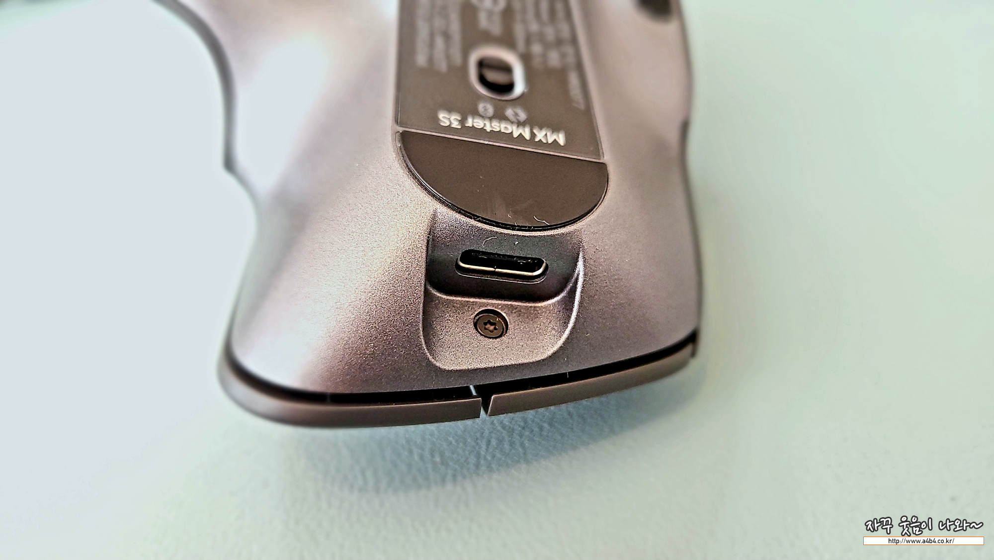 Logitech MX Master 3S 마우스는 배터리 방식이 아닌 내장배터리 충전방식입니다. 일반적인 USB-C타입 충전단자로 충전이 가능합니다.
