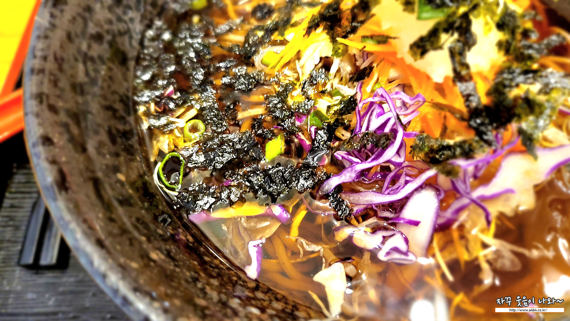 사이드로는 샐러드와 김치, 단무지, 락교가 나옵니다. 락교 좋아하는데 테이블에 리필하는 통이 없어 조금 아쉬운...