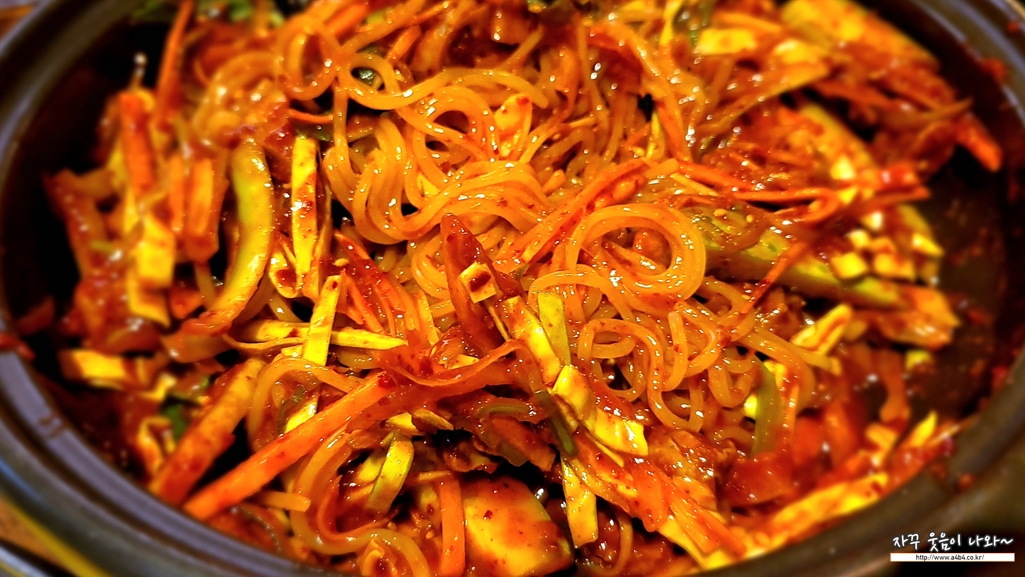 정확하게는 골뱅이 쫄면 무침입니다. 쫄면과 야채, 그리고 골뱅이가 매콤한 양념과 함께 나오는데요. 우선 골뱅이는 푸짐하게 들어 있습니다. 쫄면 식감도 좋고요. 다만 투다리 골뱅이무침 맵기는 약간 매운편에 속합니다. 매운것을 잘 드시지 못하신다면, 약간 덜 맵게 해달라고 주문하세요.
