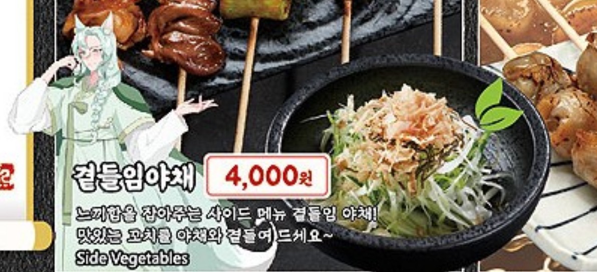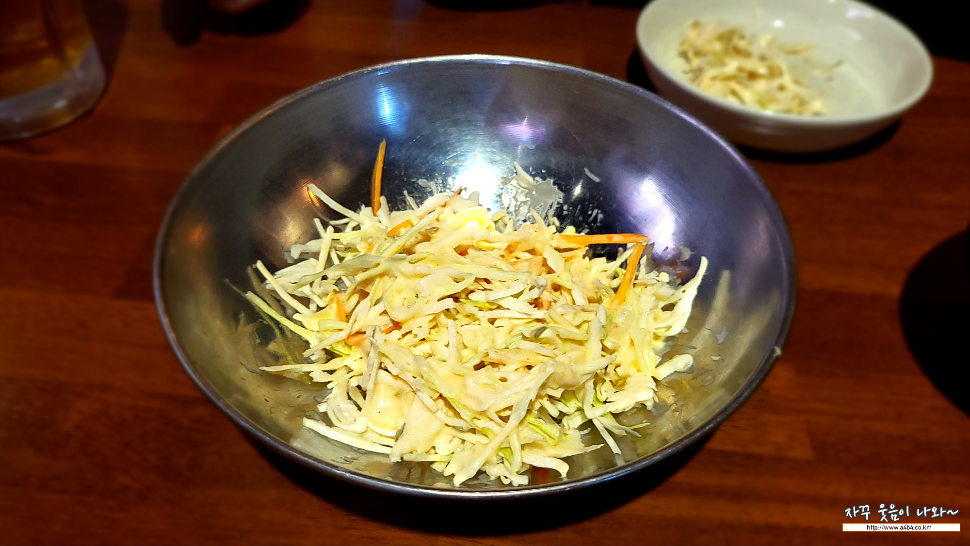 처음에는 서비스로 주셨습니다. 양배추 샐러드 생각하시면 됩니다. 돈 내고 먹기에는 어디서나 공차로 나오는 메뉴여서 추가 주문은 하지 않았네요.