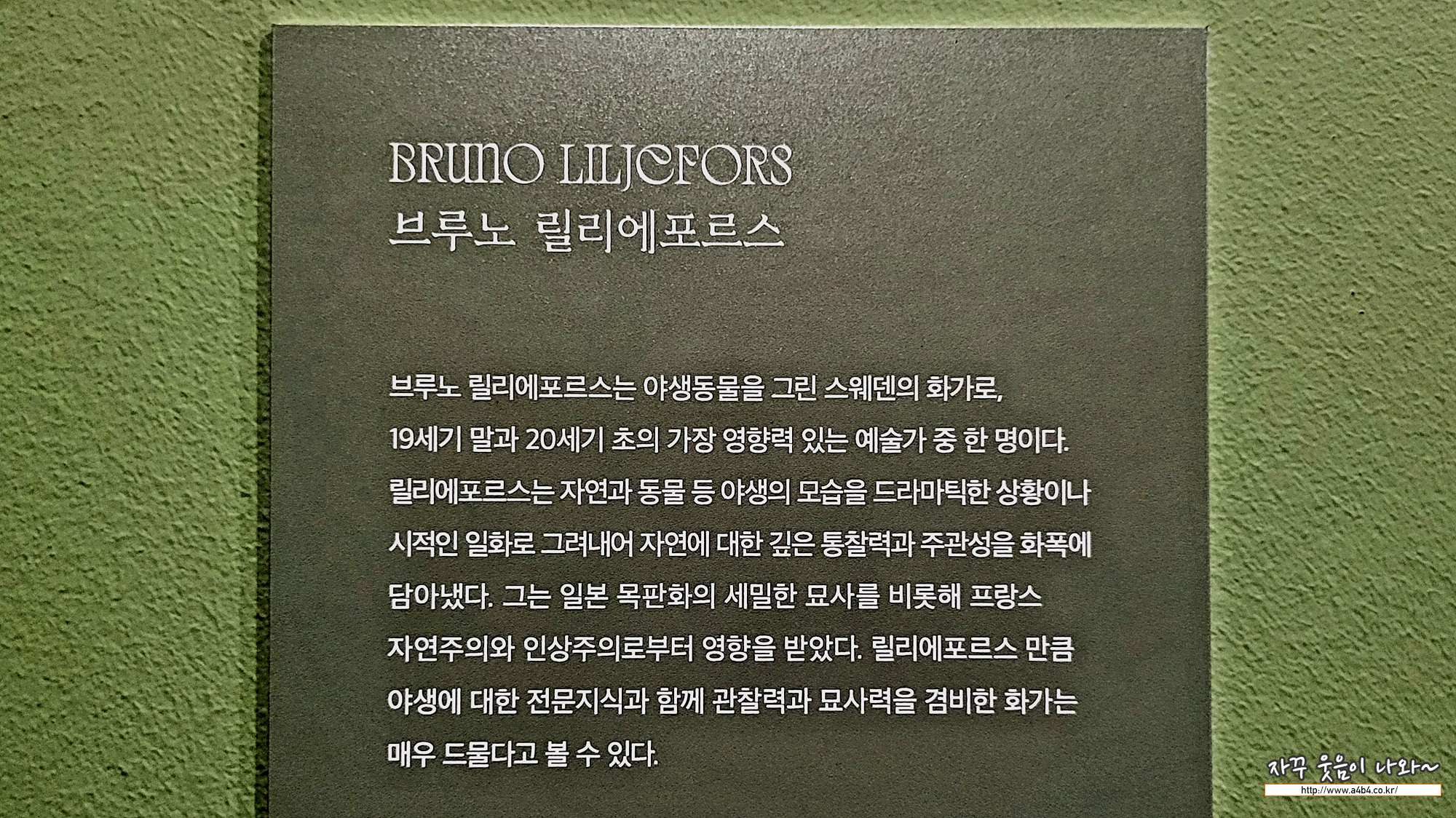 브루노 릴리에포르스는 야생동물을 섬세하게 관찰하여 작품에 담은 스웨덴의 화가입니다. 이번 '새벽부터 황혼까지 - 스웨덴국립미술관 컬렉션 전시회'에서는 브루노 릴리에포르스의 작품 다수를 만나볼 수 있습니다.