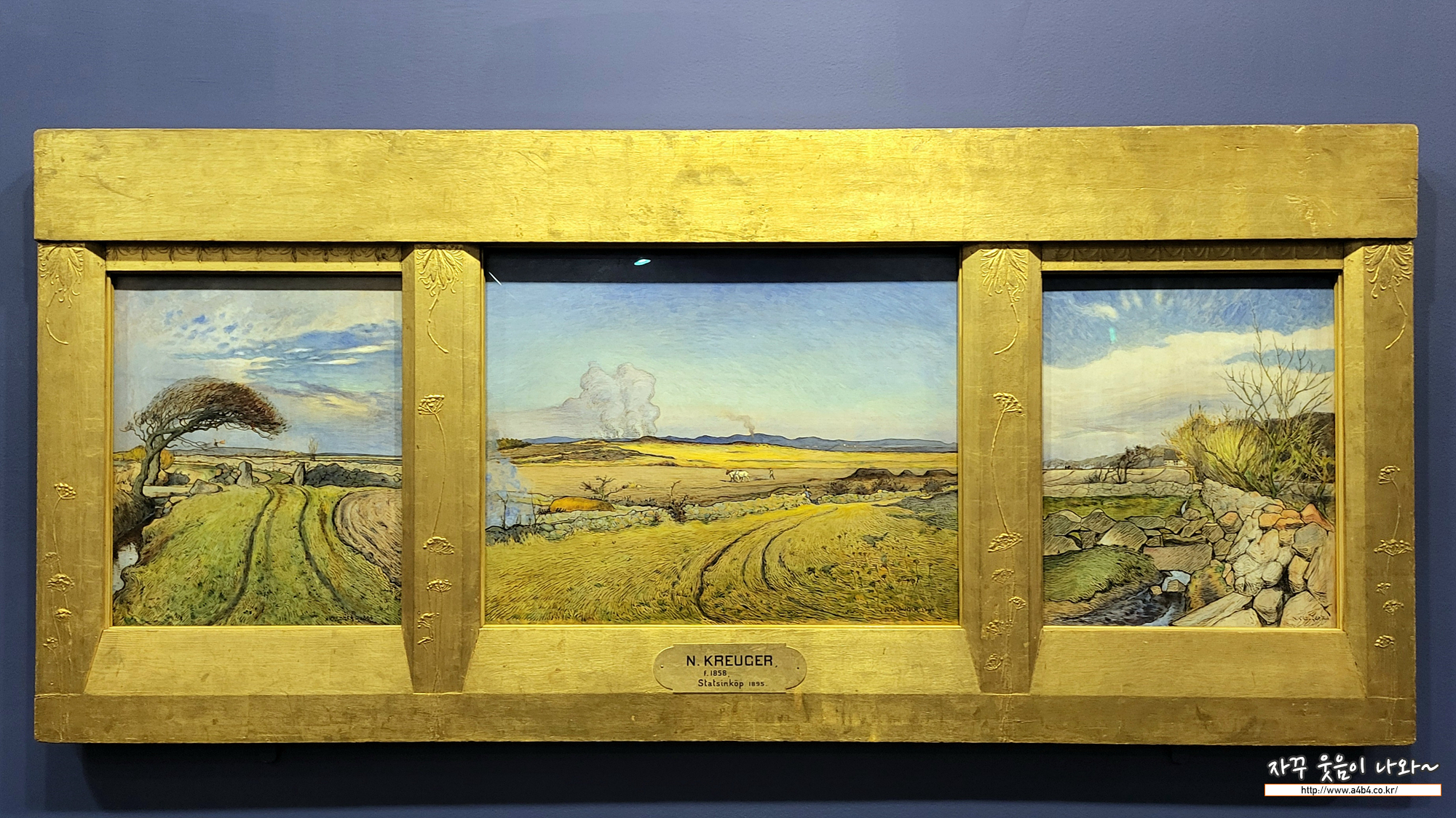 | 닐스 크뤼게르, 할란드의 봄. 화가가 제작한 액자에 회화 세 점. 1894