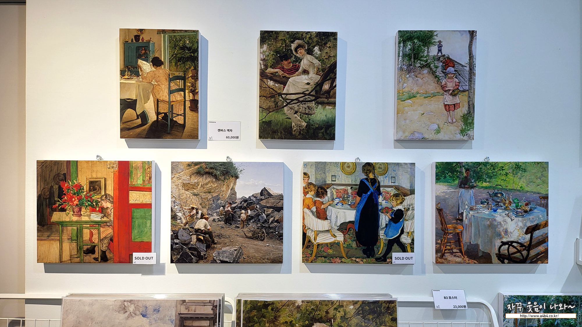 아트샵에서 구입할 수 있는 새벽부터 황혼까지 - 스웨덴국립미술관 컬렉션 기념품은 다른 전시회에서도 볼 수 있는 상품들로 구성되어 있습니다. 마그넷이바 배지, 액자등이 있는데, 작품들이 집이나 사무실에 비치하기 좋은 스타일이다 보니, 이미 일부 작품은 품절되었네요. 사람들이 보는 눈이 비슷한 것 같네요.