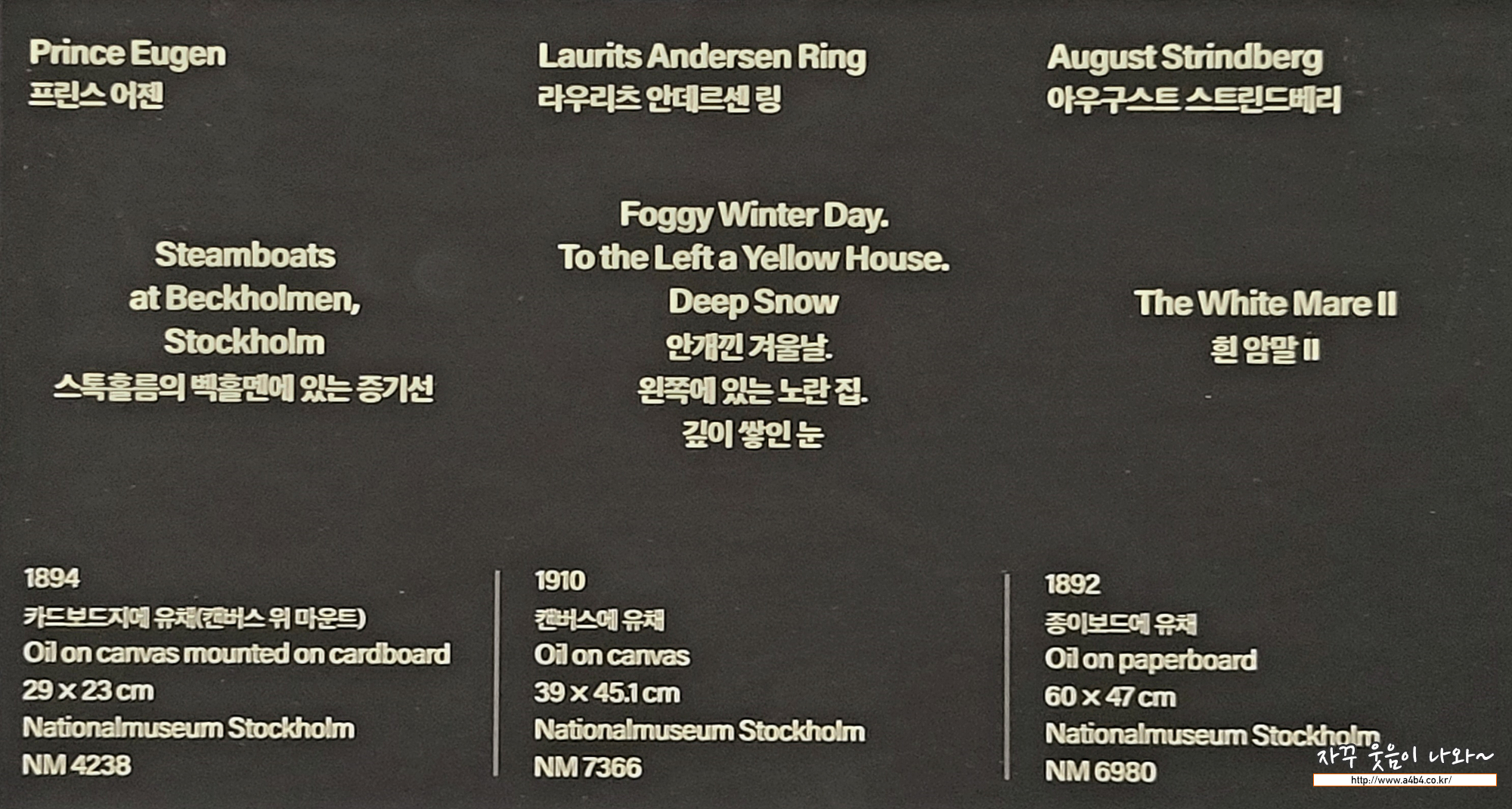 또한, 스퀘덴국립미술관의 작품들과 실내가 영상으로 제공됩니다. 가보고 싶다.