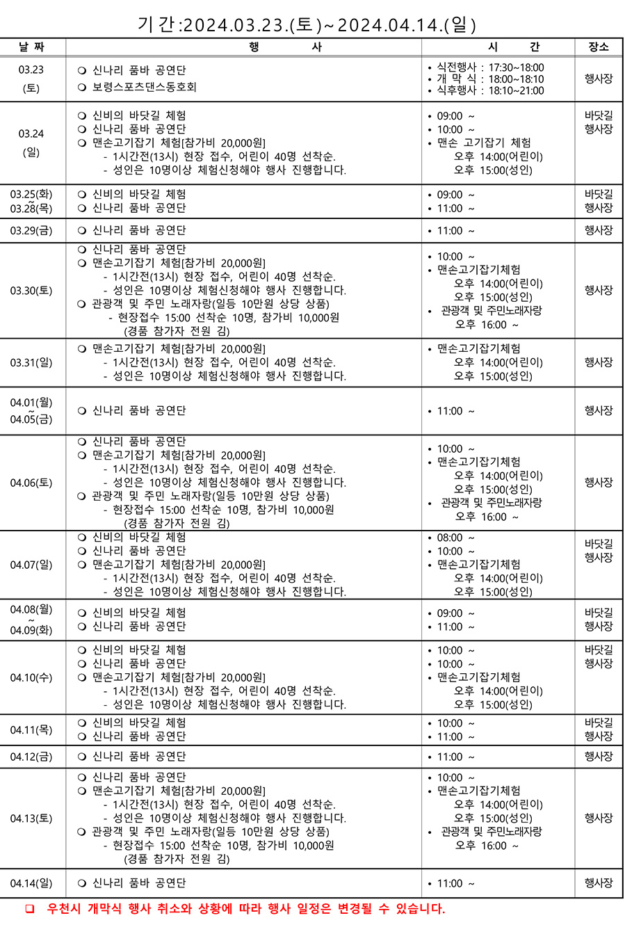 | 2024 무창포 주꾸미 도다리 축제 일정