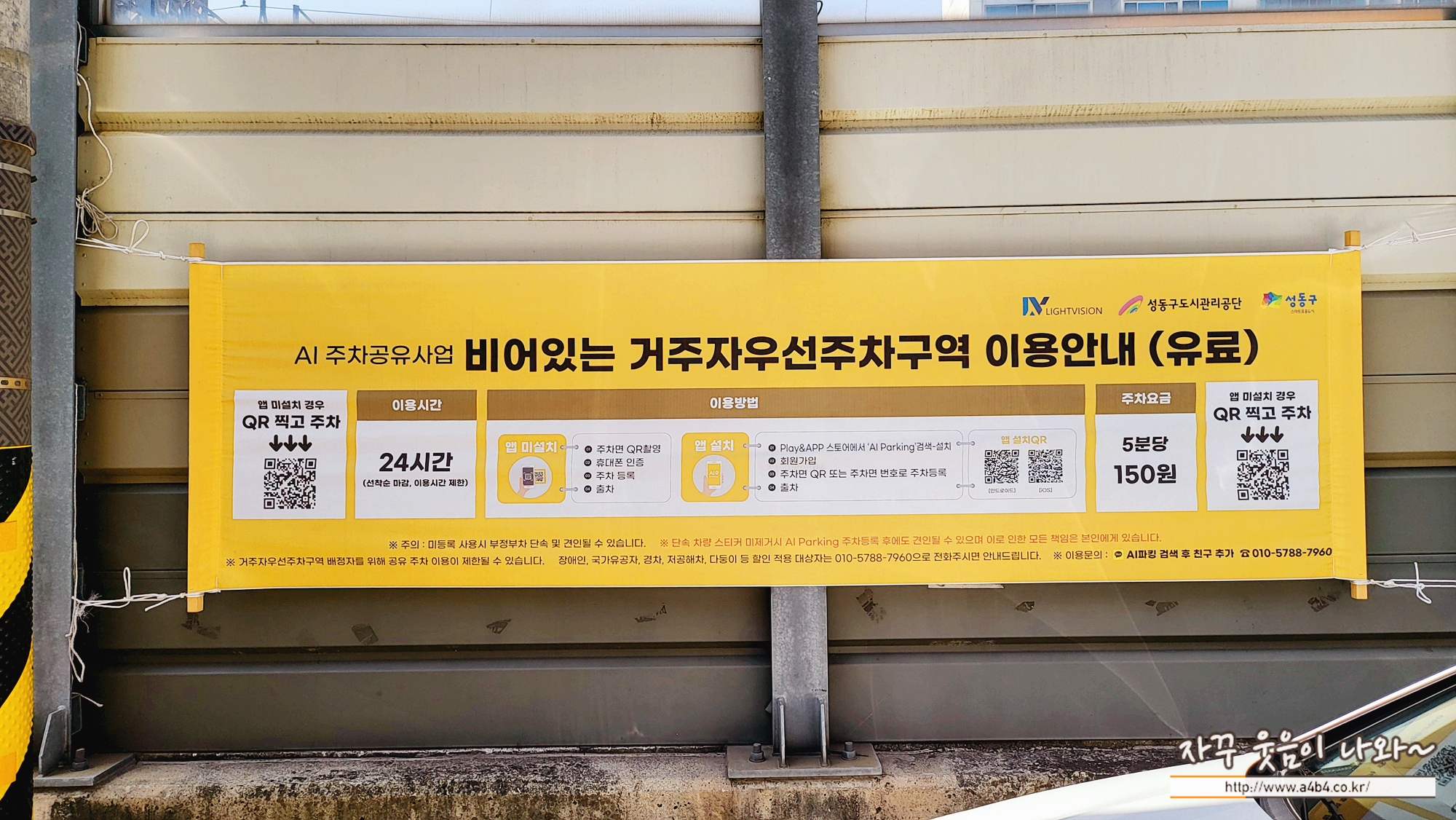 성수동 행운돈까스에서 100미터 정도 내려오는 사진과 같은 공영주차장이 있습니다. 주차요금은 5분에 150원 30분에 900원, 한 시간 1,800원으로 주차요금은 크게 부담되지 않는 금액입니다.