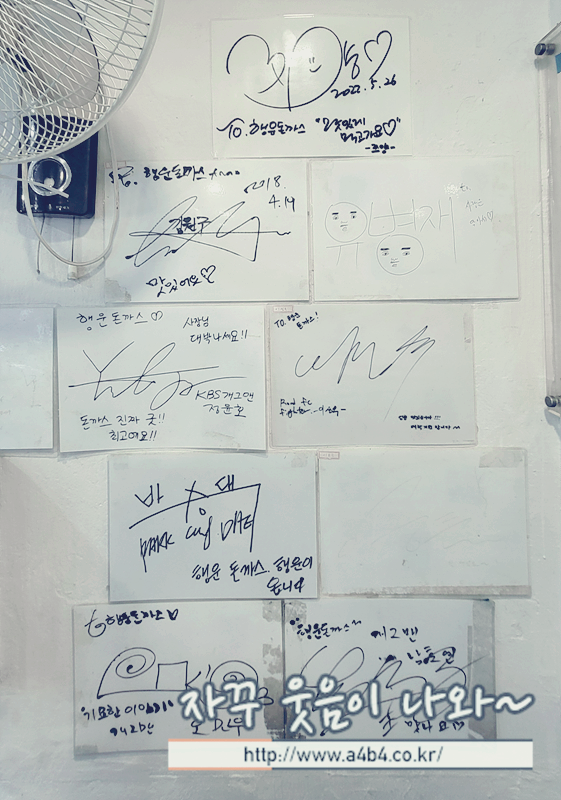 벽면에는 이곳을 방문한 유명인들의 싸인이 붙어 있네요. 맛집이라면 빠질 수 없는... 쯔양과 유병재씨 사인도 보이네요.