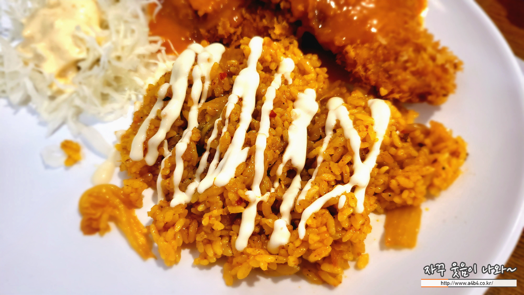 김치볶음밥은 기대했던 맛의 김치볶음밥은 아니었습니다. 매콤한 맛과 아삭하게 씹히는 김치 식감의 김치볶음밥을 기대했는데, 카레맛이 느껴지며, 마요네즈가 위에 올라간 볶음밥이 나왔네요. 맛이 없다기 보다는 기대와 다소 다른...