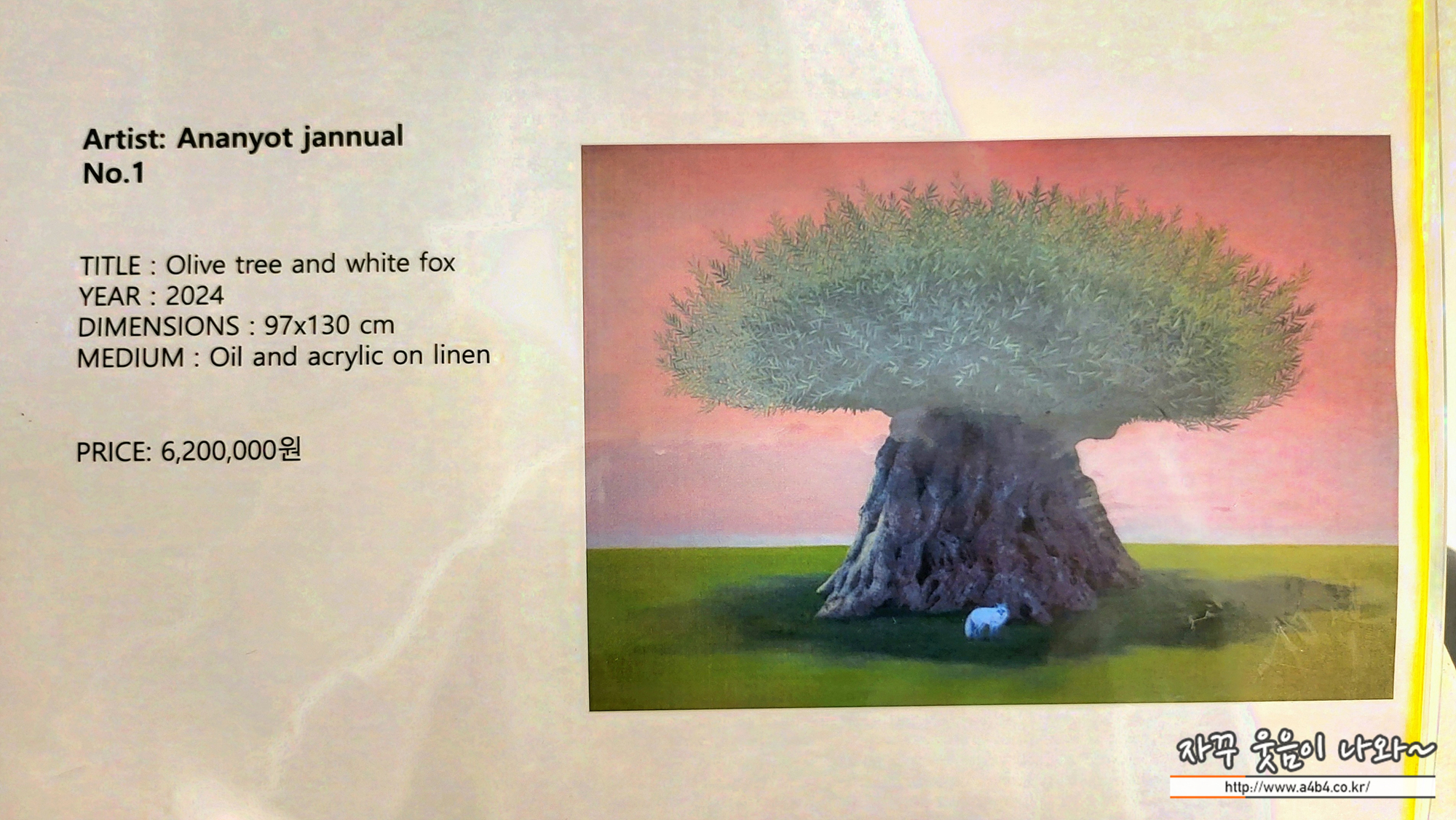 이번 넥스트뮤지엄에서 열리고 있는 ''Based on East Asia - Special Exhibition of Eastern Asia Artists' 전시회에 Ananyot Jannual 작가의 작품 3점이 전시되어 있습니다. Olive Tree and... 연작으로 다소 몽환적인 느낌의 작품을 보여줍니다.