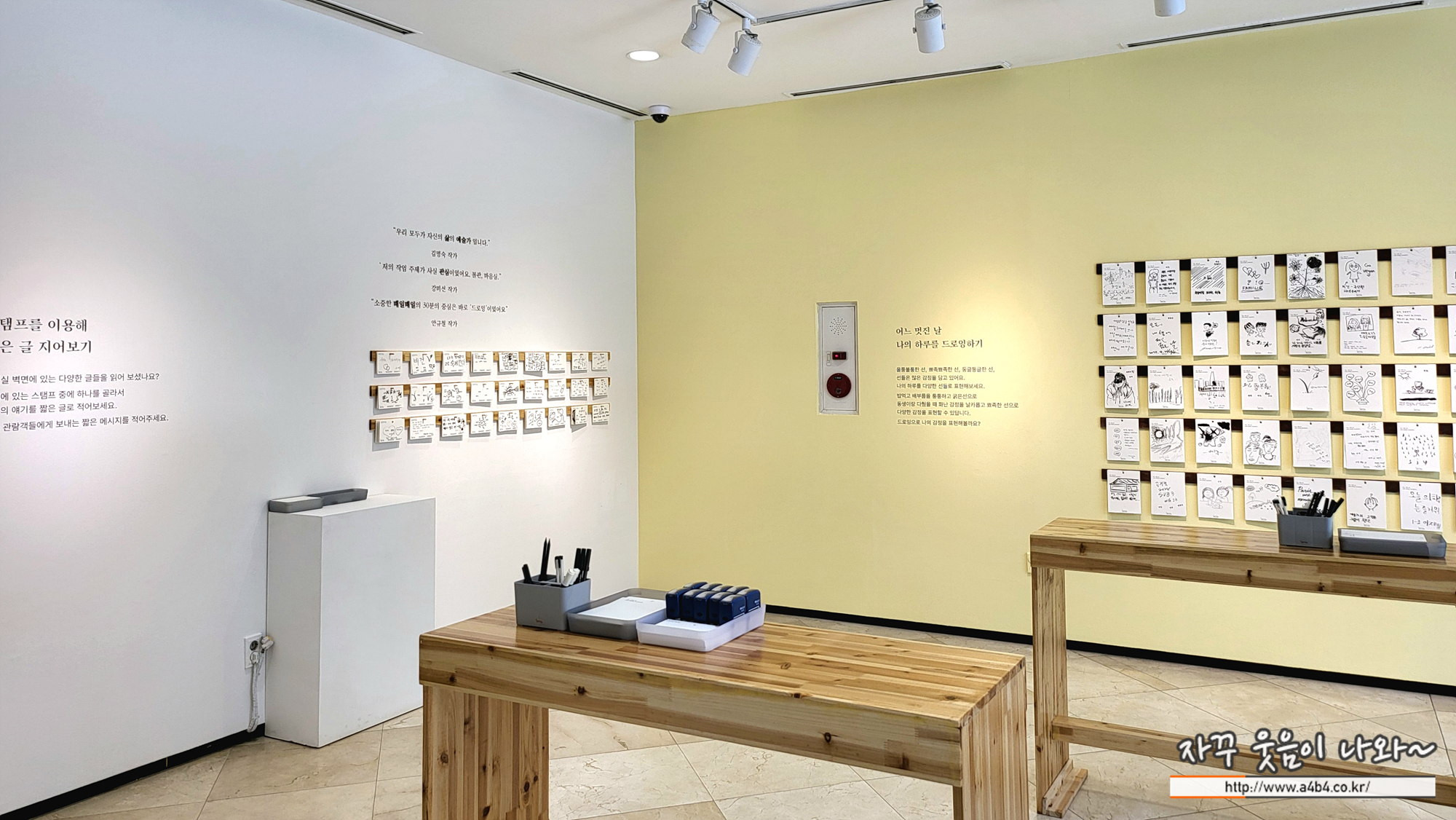 아래층 전시공간으로 이동하는 공간에는 아트샵과 체험공간이 있습니다. 보통 소마미술관에서 전시회가 진행되면 체험공간 또는 포토존이 있는데요. 오늘은 전시회 관람시간 계산을 잘못하는 바람에 생략하고 지나 갑니다.