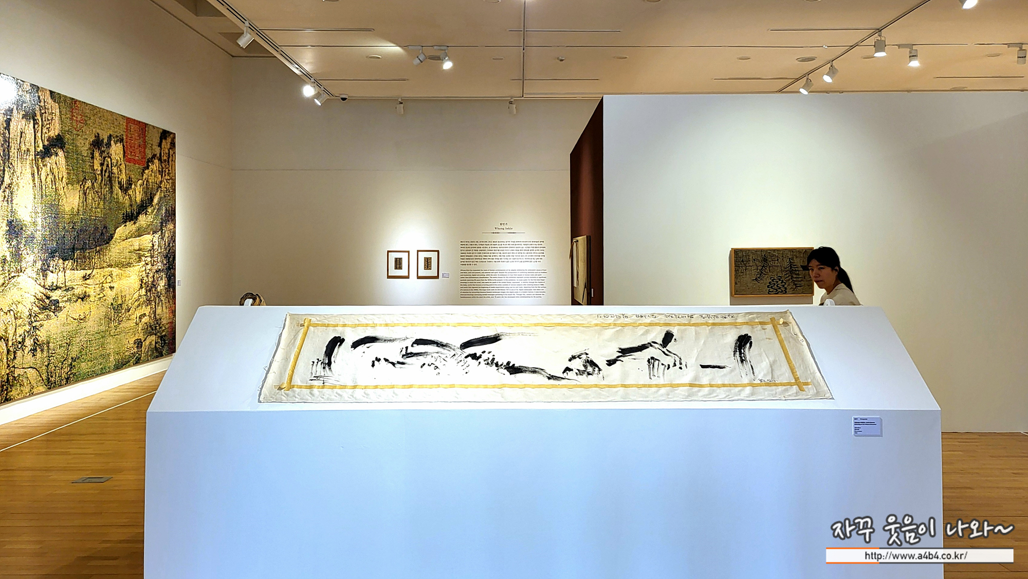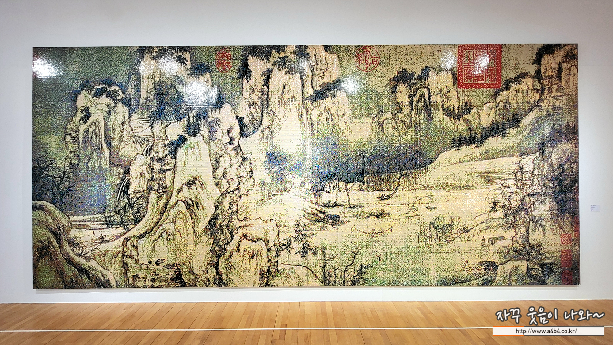 황인기 작가의 공간으로 들어가면서 가장 먼저 눈에 보이는 가장 큰 작품, 오래된 거대한 산수화를 보는 느김이었느데요. 작품 앞으로 다가가면서 놀라운 경험을 하게 됩니다.