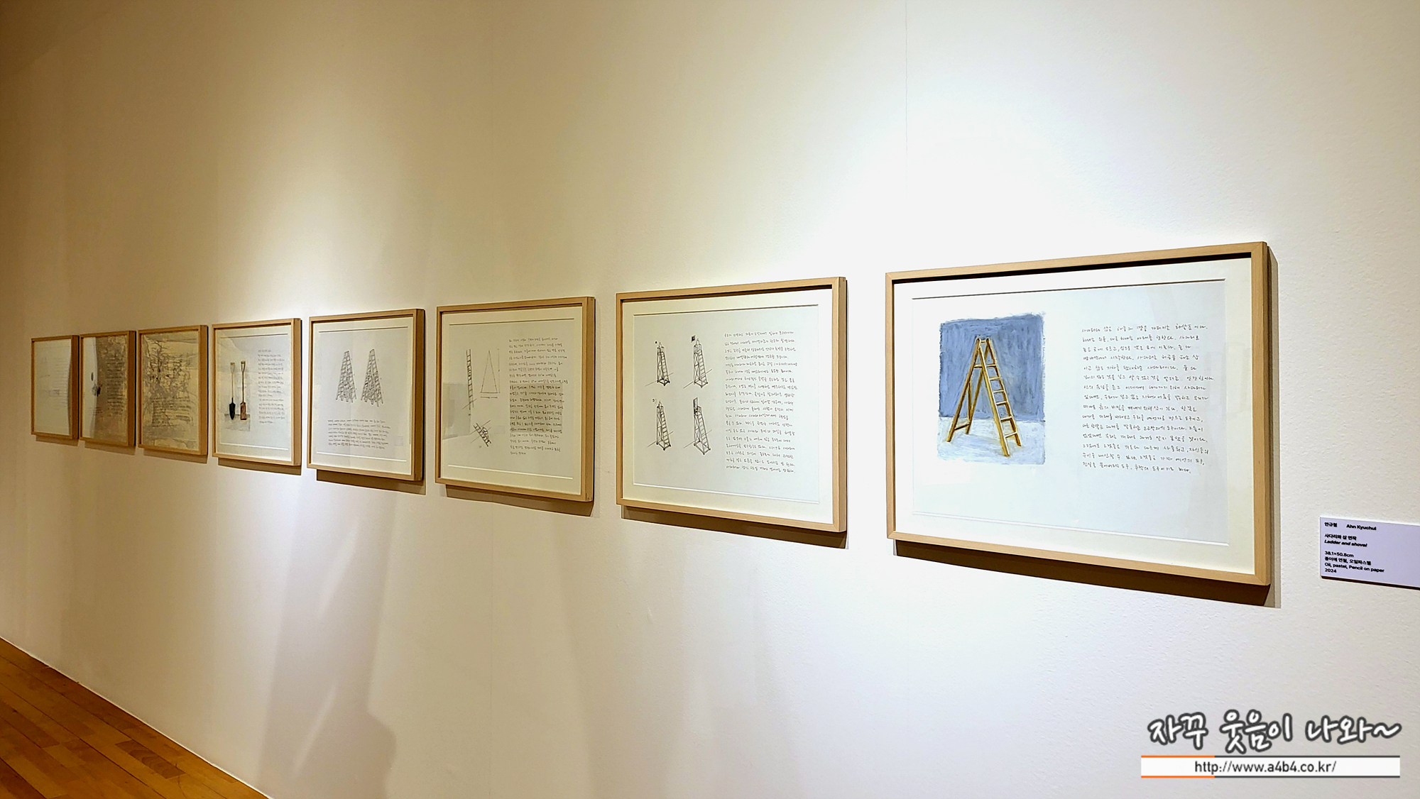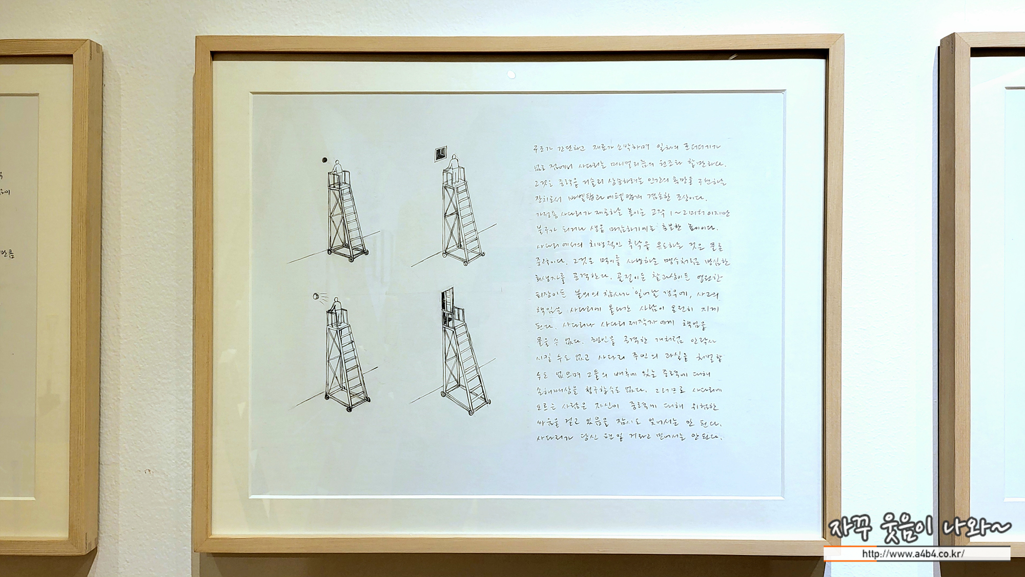 옆에는 사다리와 삽 연작 스케치 및 작가가 생각하고 의도한 작품에 대한 설명이 있지만...
