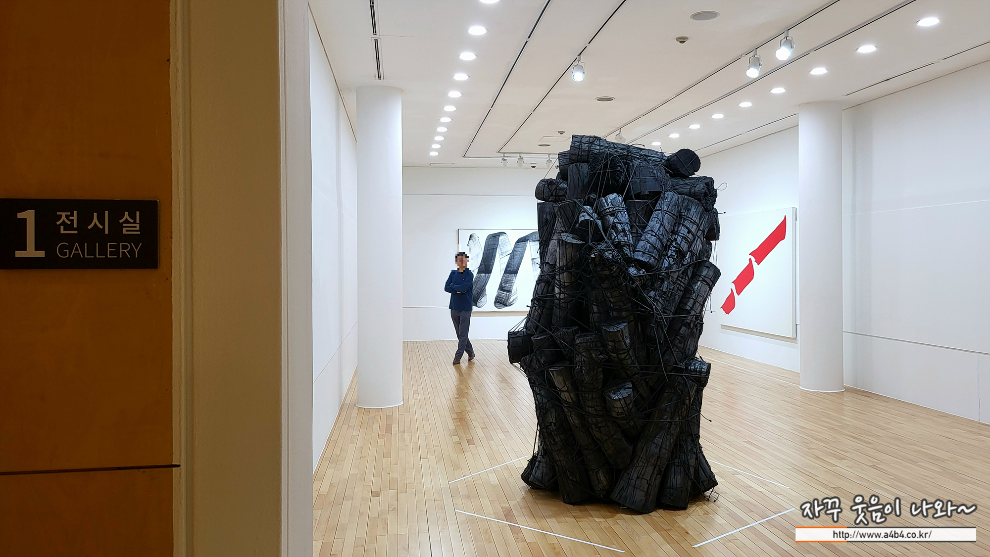 이배 작가의 가장 잘 알려진 작품연작 숯을 이용하여 이러한 입체 조형물 또는 액자형의 평면 작품들이 있는데, 이번에는 거대한 조형물이 전시되어 있습니다. 아쉽게도 이번 소마미술관 개관 20주년 특별전 '드로잉, 삶의 철학을 그리다' 에서 이배 작가의 작품은 많이 만나볼 수 없습니다.