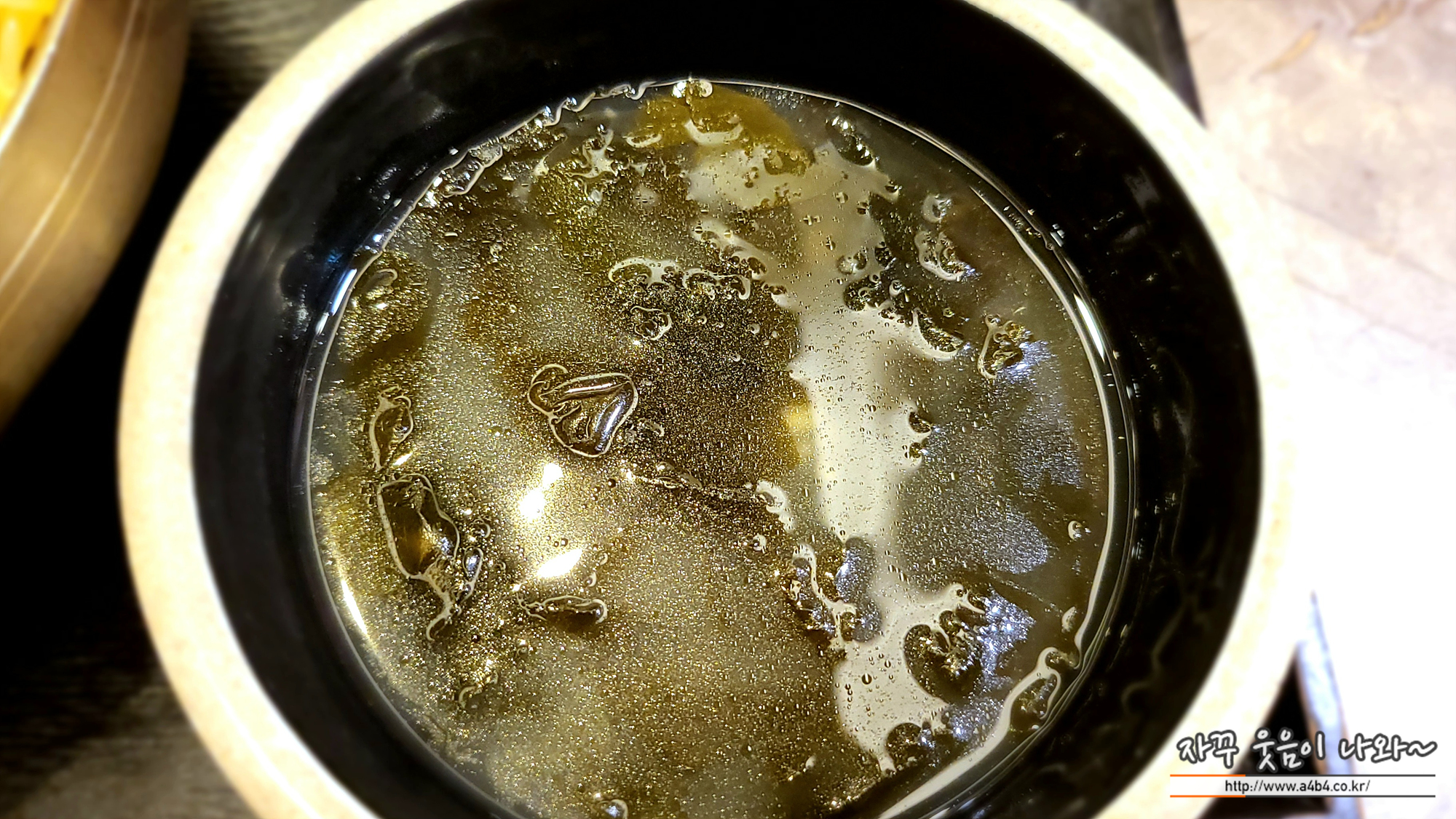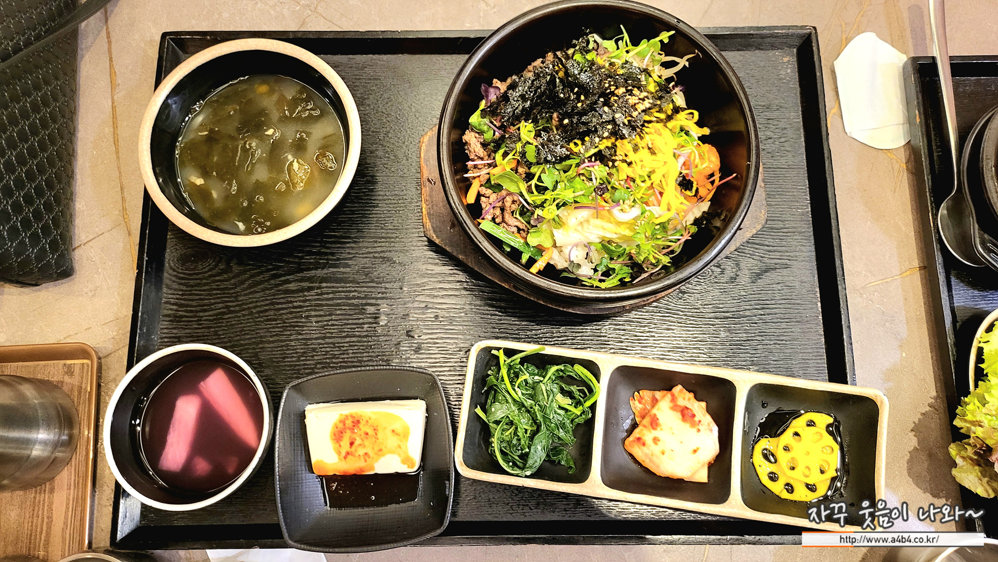아쉬움이 가장 많은 메뉴였습니다. 반찬과 국 구성은 앞에서 리뷰한 육회 비빔밥과 동일합니다.