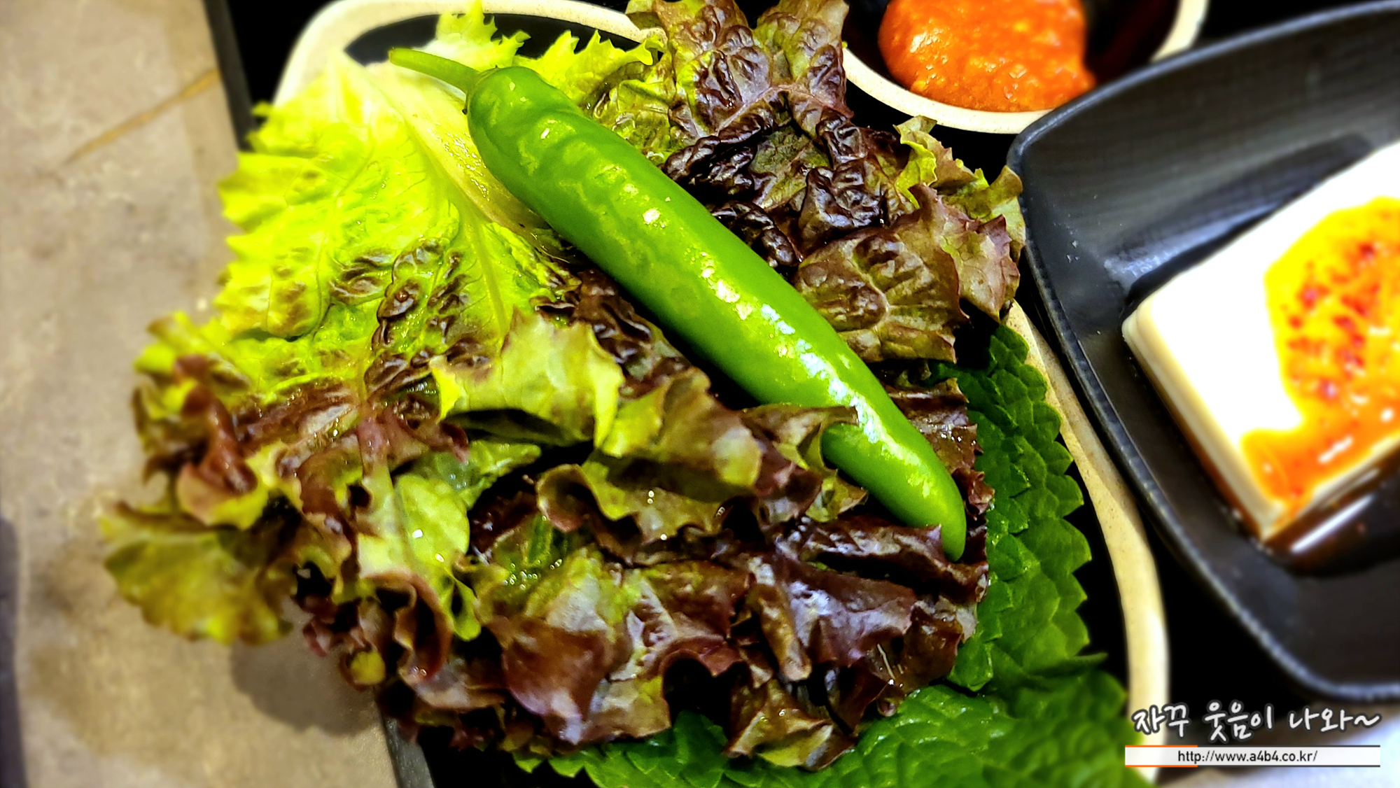 다만 상추 서너장에 깻잎 한 두장이 나와서 조금은 황당했네요.
