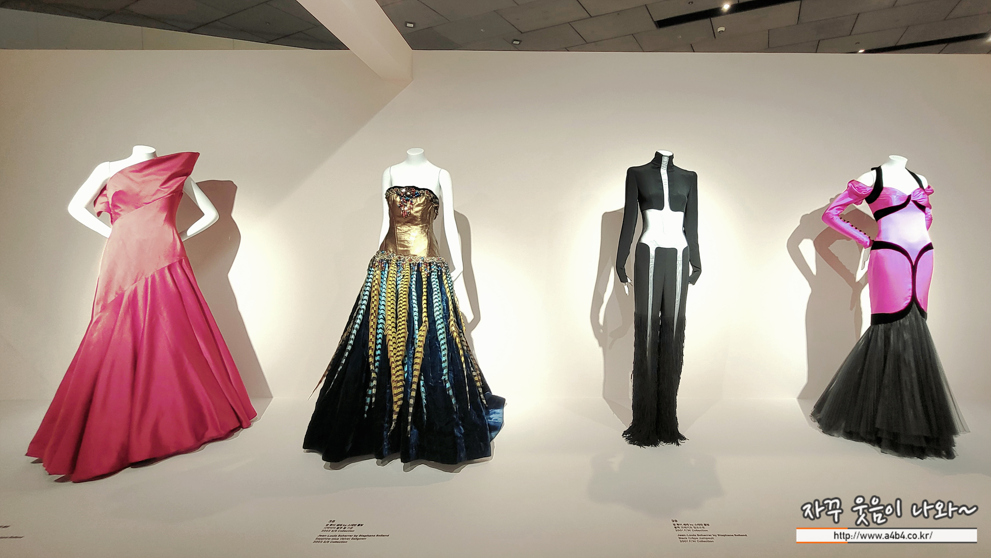 섹션2 시작은 다소 이질적인 의상들이 한 곳에 전시되어 있는데요.