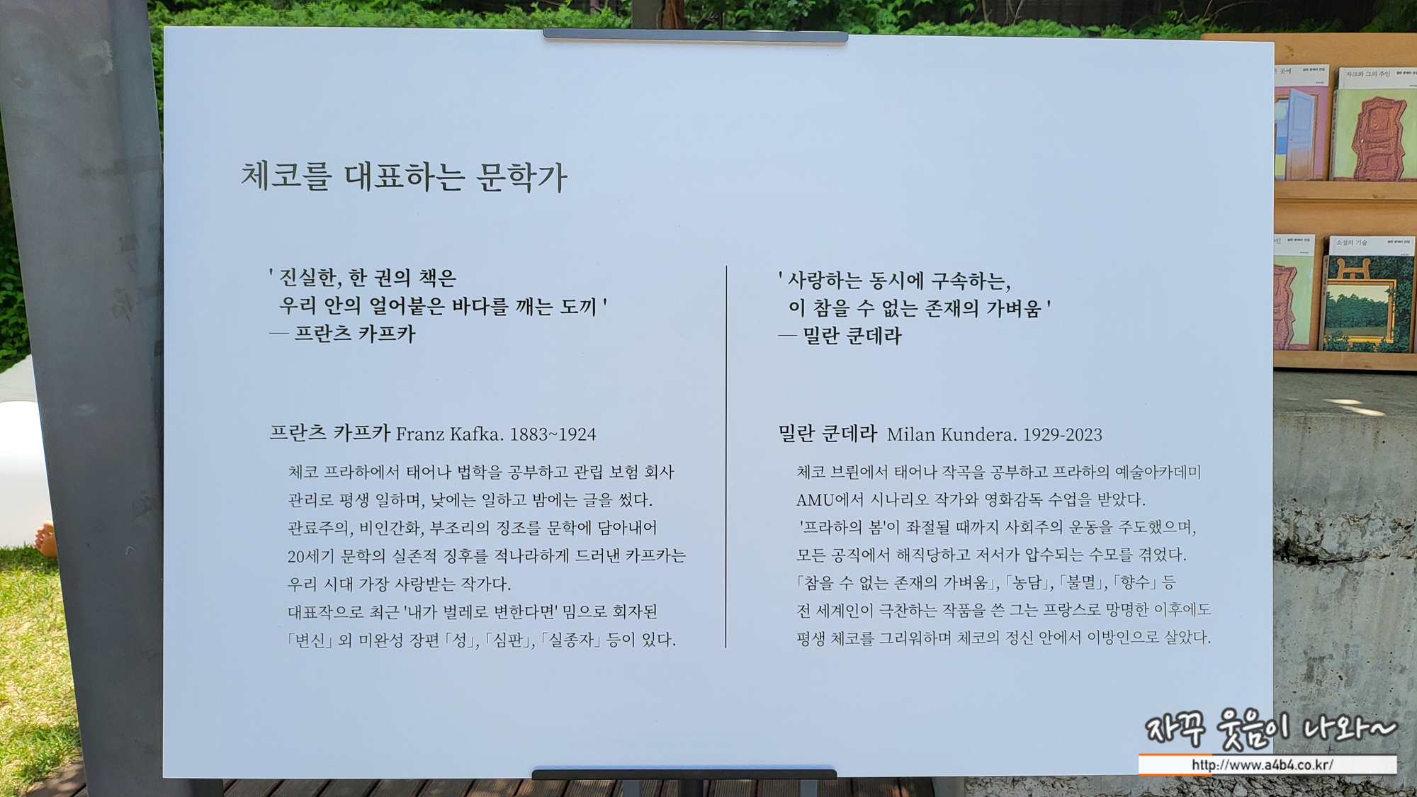 체코의 국민화가 알폰스 무하가 있다면 대표 문학가로는 변신을 쓴 프란츠 카프카와 참을 수 없는 존재의 가벼움으로 알려진 밀란 쿤데라가 있습니다.