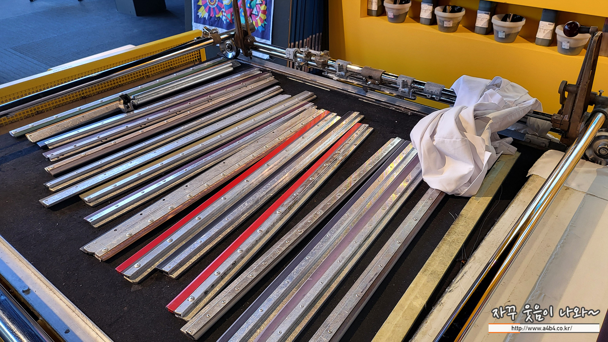 에르메스 스카프 실크스크린 작업을 위한 대형 스퀴즈, 제작 과정 시연은 보지 못해서 아쉽네요.