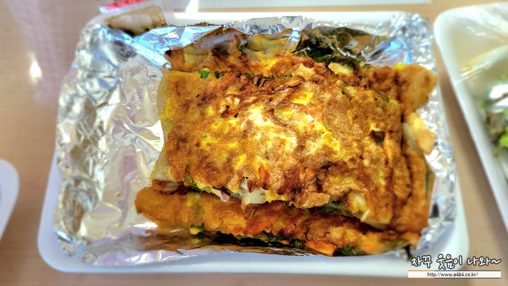 제가 생각한 파가 많이 들어간 파전은 아니고요. 계란이 상당히 많이 들어간 계란파전입니다. 양은 파전 한 장 생각하시면