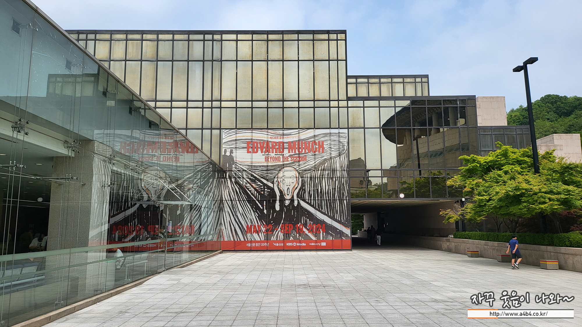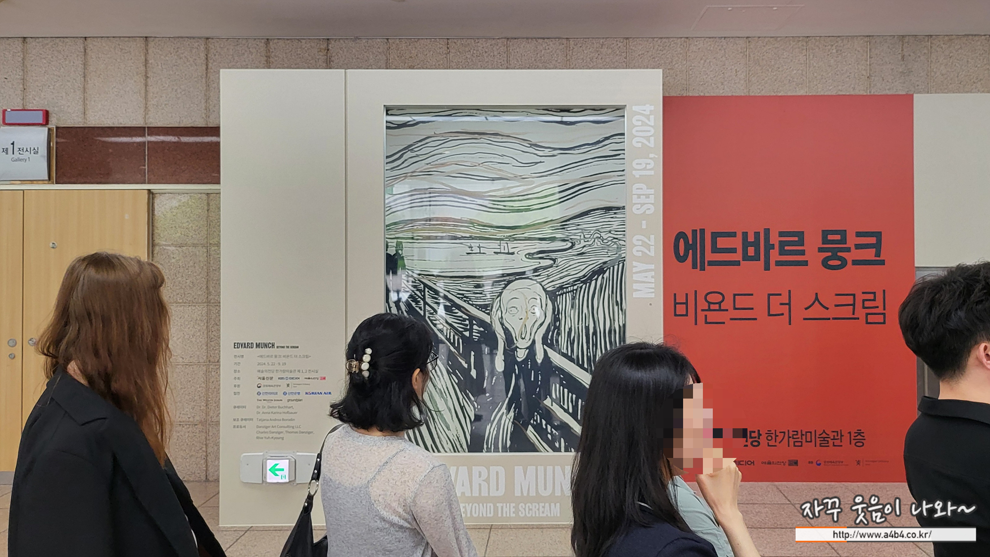 예술의전당 한가람미술관 1층 밖에는 대형 뭉크 현수막이 있습니다. 이 앞에서 사진촬영 하시는 분들 많네요.