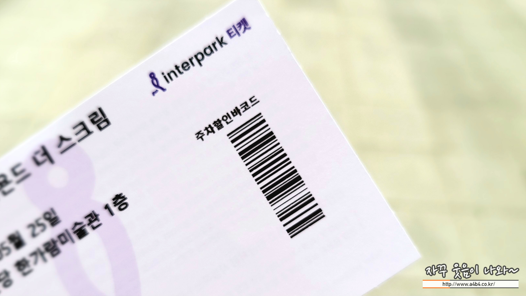 주차요금 할인은 예술의전당 에드바르 뭉크 전시회 티켓에 인쇄되어있는 바코드를 주차정산기에 인식하면 됩니다.