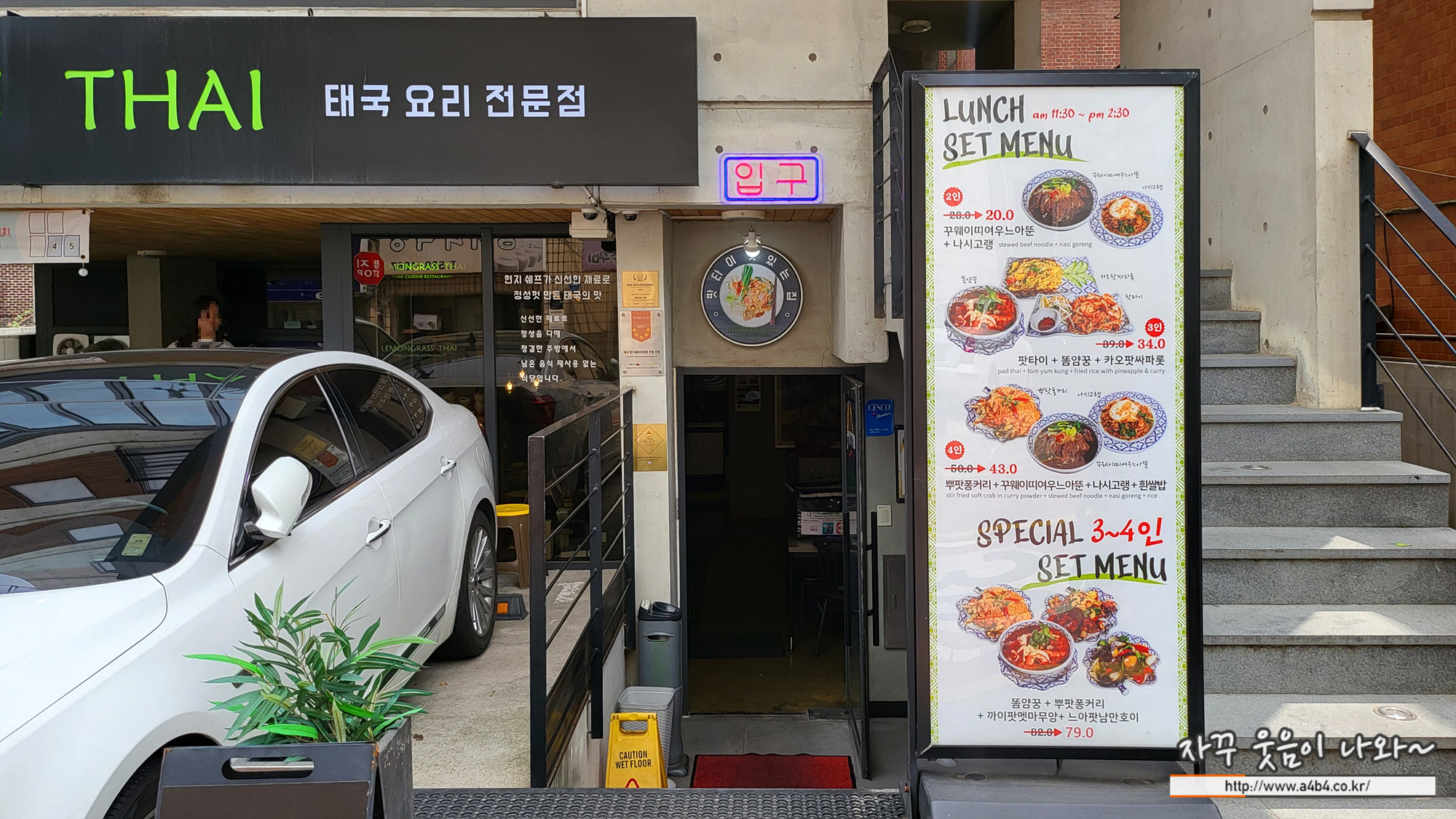 건물 오른쪽 반지하로 내려가시면 됩니다. 레몬그라스타이 남부터미널 점은 1층과 2층에 매장이 있고요. 평일에는 주변 회사원들이 방문을 많이해서 그런지 1층과 2층 모두 영업하고 있는데요. 주말에는 2층만 운영하고 있습니다.
