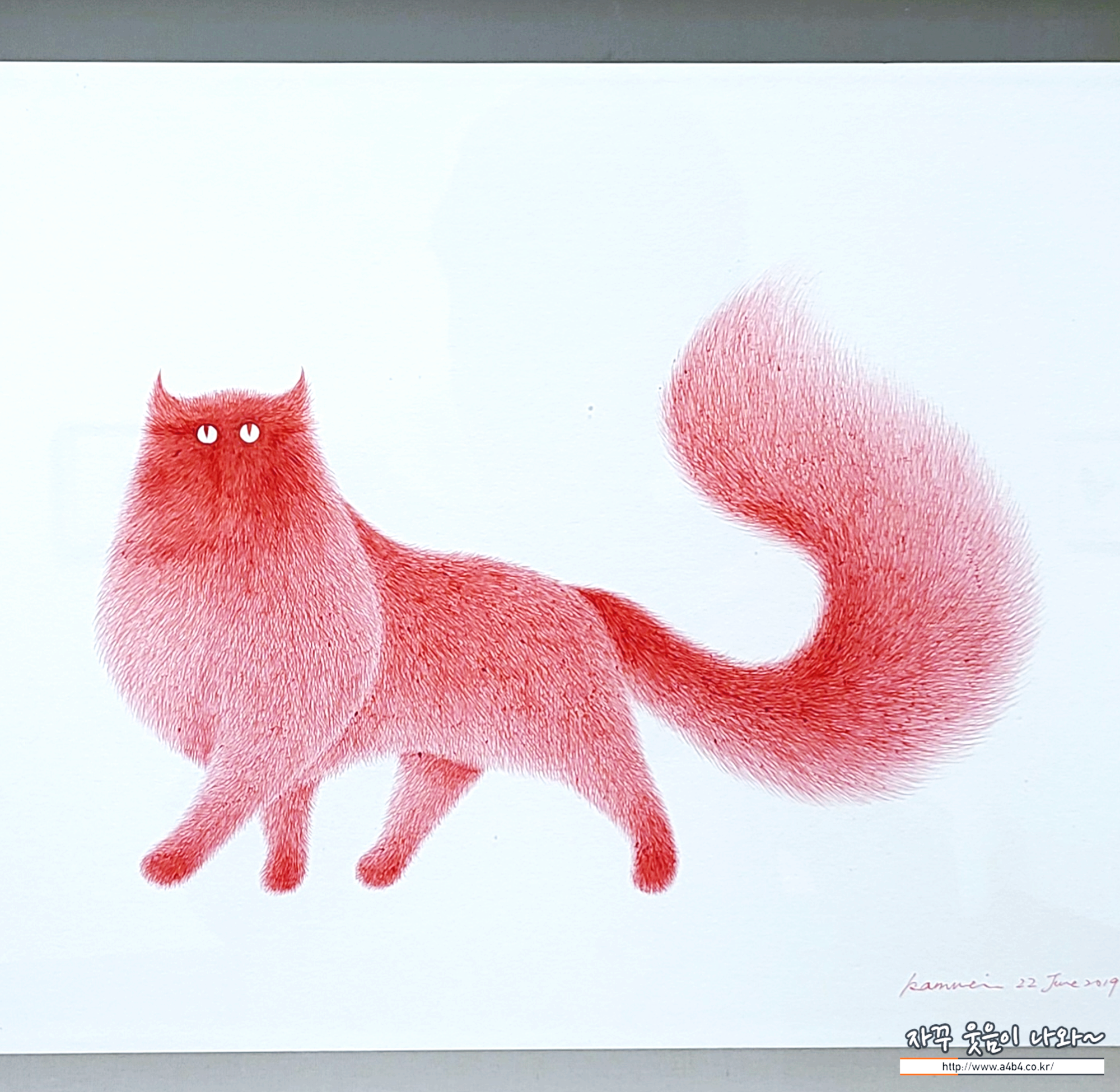 잠실 넥스트 뮤지엄에서 열리고 있는 고양이화가 캄웨이퐁 (Kamwei Fong) 개인전이 얼리고 있는 전시관 모습입니다. A4~A3 사이즈 20여점의 작품이 전시되고 있는데요. 관람에서 30분 ~ 1시간 정도 생각하시면 됩니다.