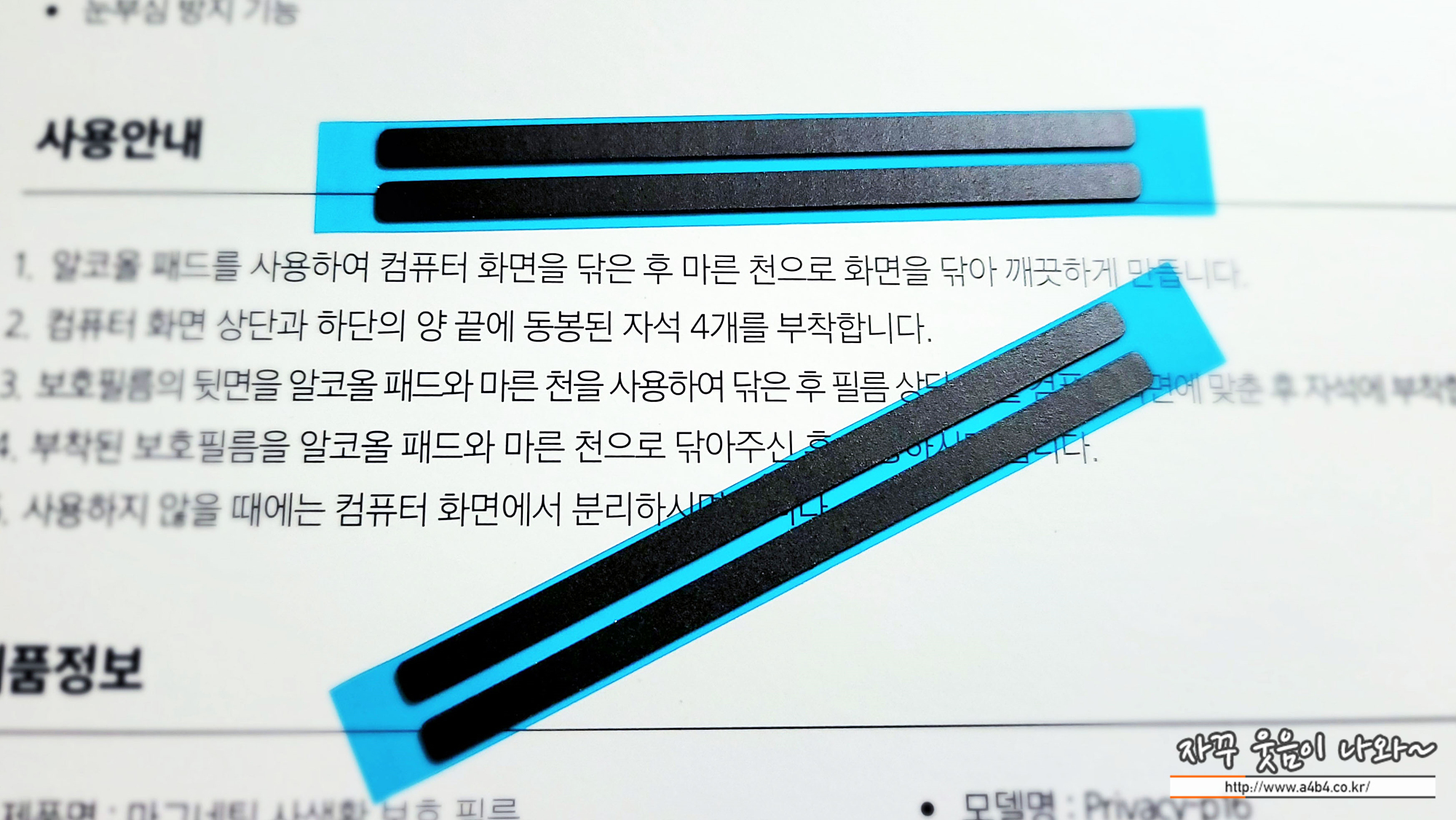 오늘 소개하는 neos 마그네틱 사생활 보호필름은 노트북 액정 4면에 얇은 막대 자석을 부착하고 액정보호 필름을 탈부착하는 방식입니다. 동봉된 클리닝 세트로 액정을 잘 닦고 부착하면 되는데요.