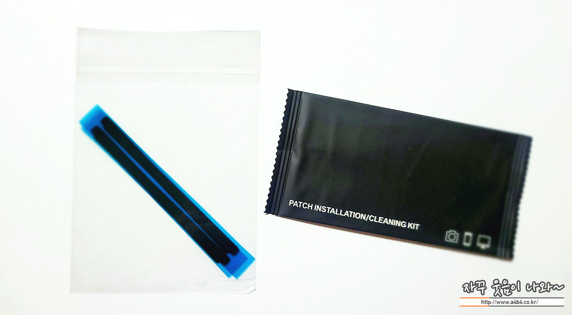 제품구성은 액정보호 필름과 보관용 홀더, 클린키트, 자석 4개로 구성되어 있습니다. 휴대폰 액정보호필름에 보통 포함되어 있는 구성품과 동일합니다.