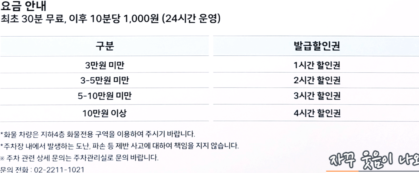 | 주차요금 및 할인 : 최대 4시간 무료주차