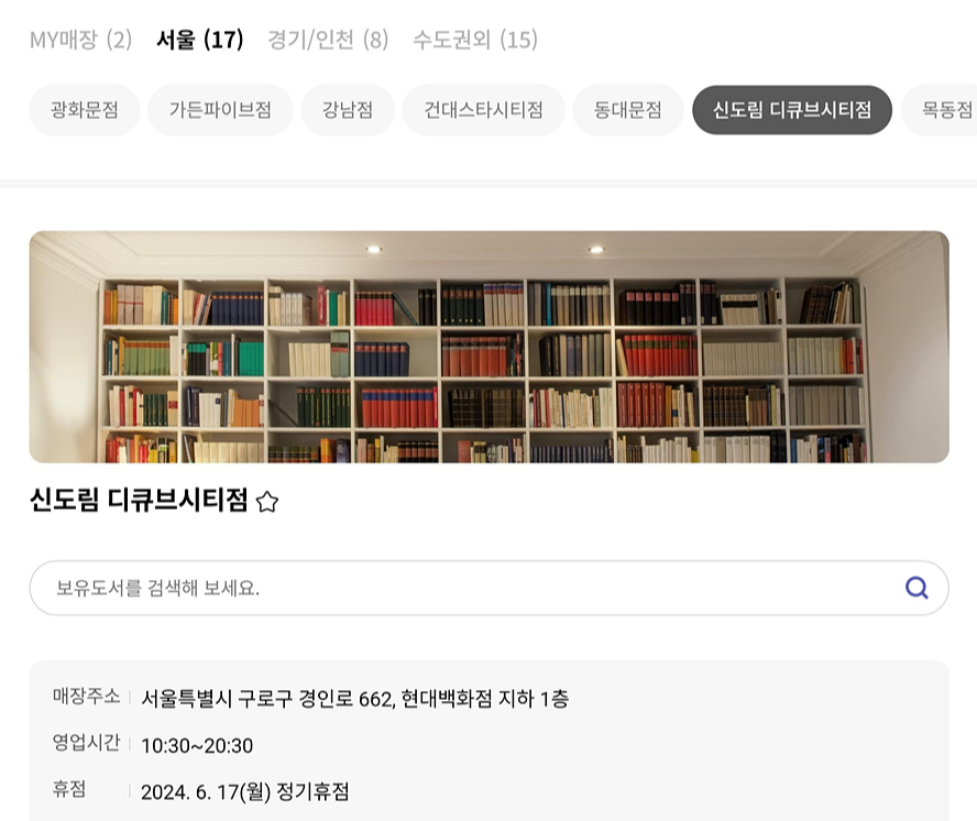 교보문고 신도림 디큐브시티점 영엽시간은 10시 30분 부터 20:30분까지 운영됩니다. 신도림 교보문고 휴무일은 현대백화점 디큐브시티점 휴무일에 맞추어 운영되니, 홈페이지 참고하시고 방문하세요;