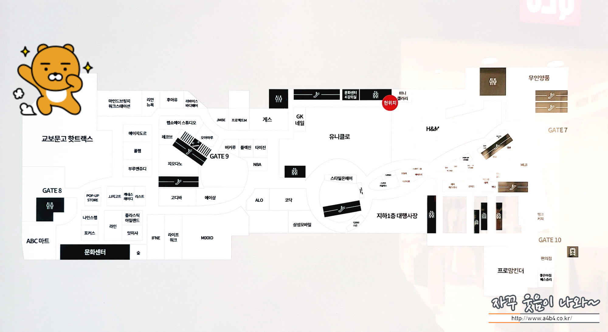 우선 지하 1층 유플렉스 공간을 찾으시고요. 끝까지 걸어가시면 됩니다.
