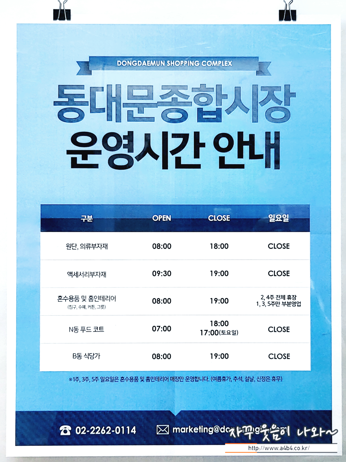 동대문 원단상가와 부자재 상가는 일요일 휴일, 토요일은 부분영업이라 하지만 사실상 일부매장만 문을 열었네요. 동대문 종합상가에서  토요일 정상영업하는 곳은 동대문 액세서리 부자재 상가 뿐이네요.