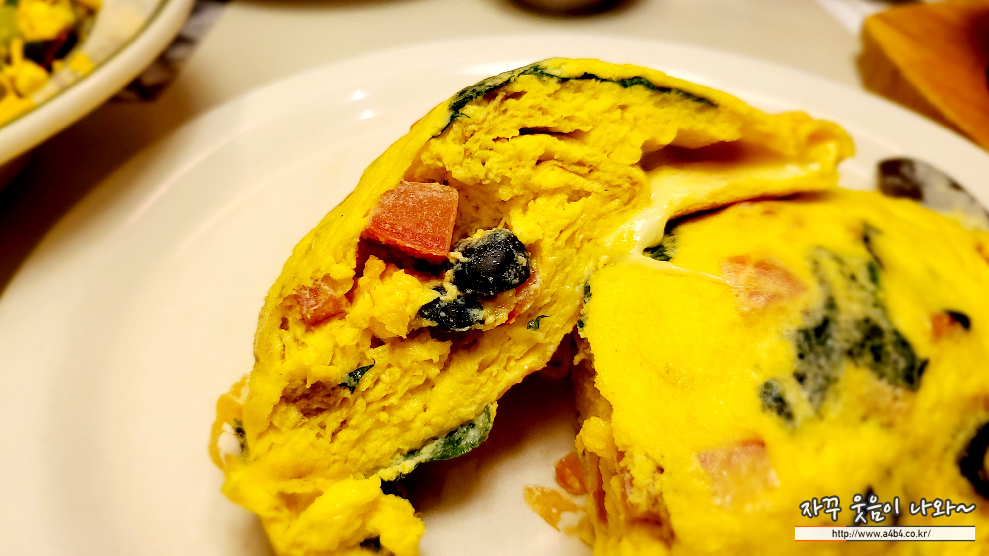 식감은 기존 부드러운 식감의 오믈렛 보다는 약간 드라이한 식감을 보입니다. 이부분은 개인차가 있을 것 같네요. 특히 치즈가 듬쁙 들어가 있는데, 저는 너무 느끼하다는 생각이 들어 오리지널 팬케이크 하우스 잠실점 플로렌틴 오믈렛은 추천 드리지 않습니다.