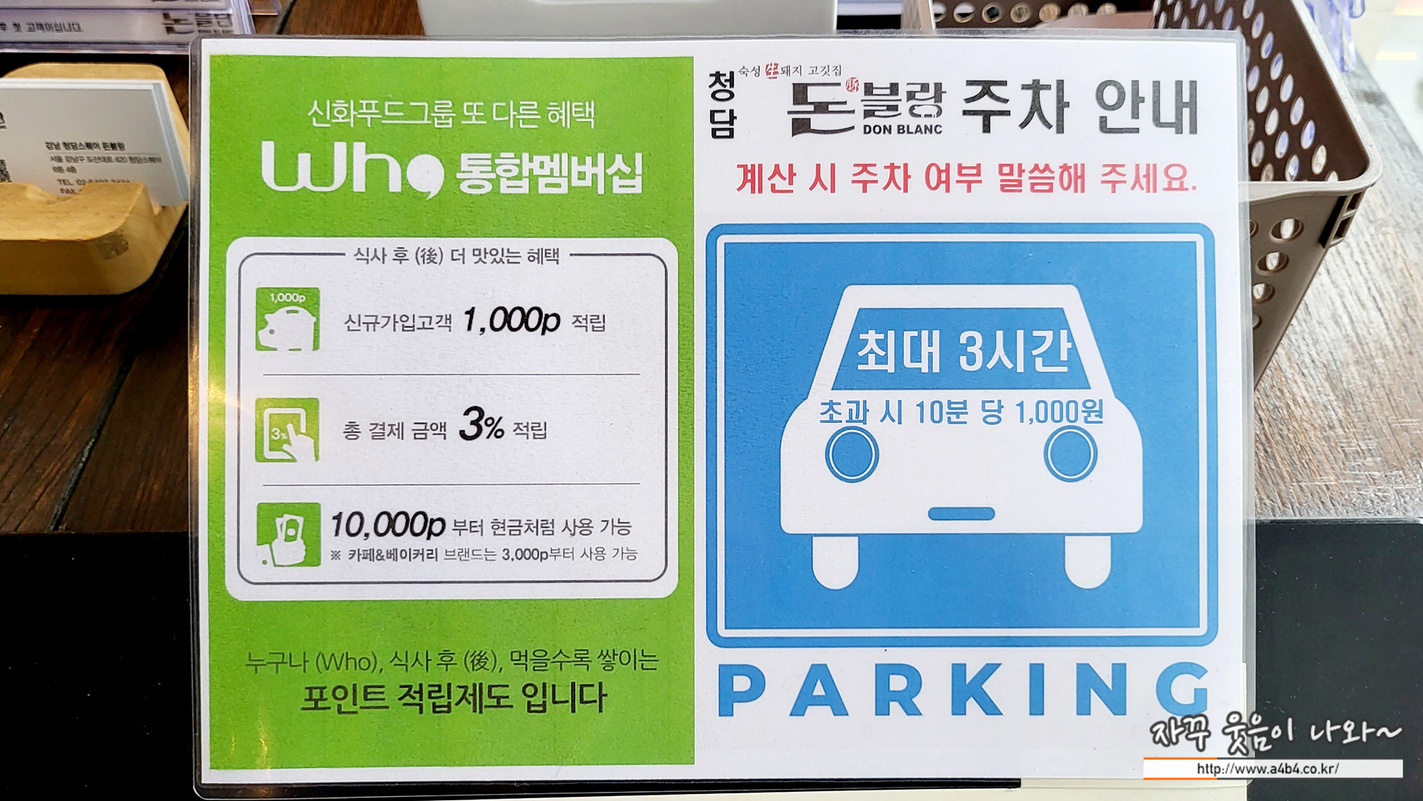 또한 돈블랑에서 식사하시면 3시간 무료주차가 지원되니, 잘 활용하셔도 좋을 것 같습니다.