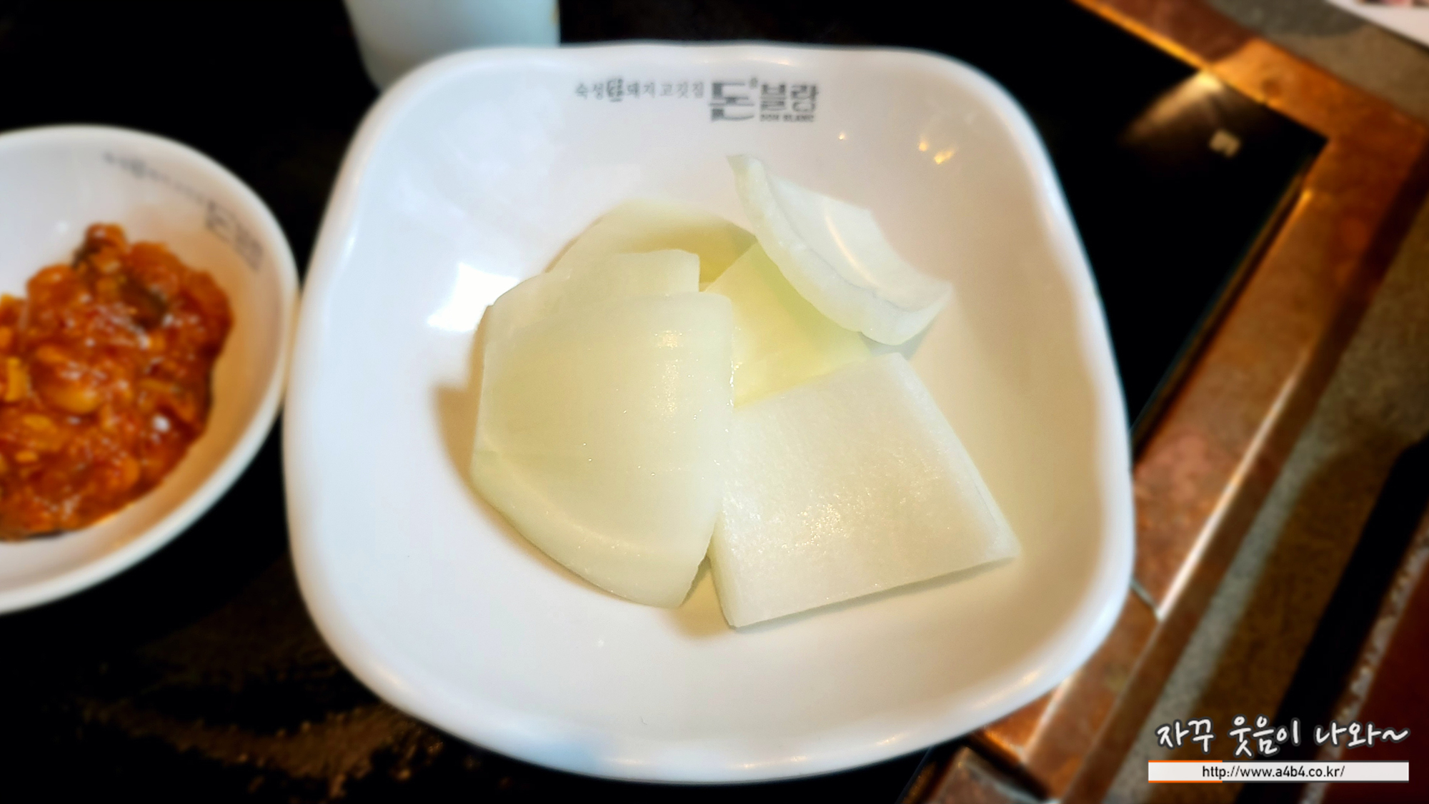 저희는 점심 정식을 주문했고 반찬은 사진과 같이 깍뚜기와 오징어젓, 고사리, 생양파가 나옵니다. 물론 부족하면 친절하게 리필도 가능합니다. 반찬들 모두 맛있고요.