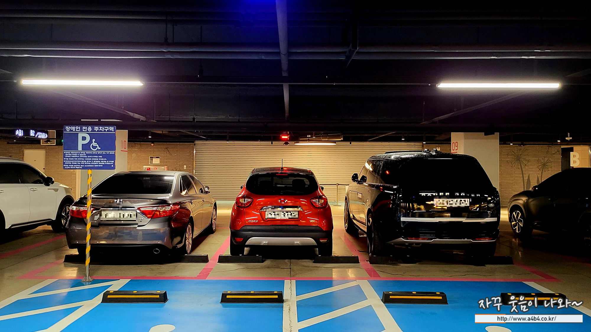 주차장 차폭도 넓고요. 지하 2층 주차장에는 장애인 전용 주차구역과 여성전용 주차구역이 마련되어 있는데요. 주차장 폭이 넓어서 문콕 등의 부담이 적네요.
