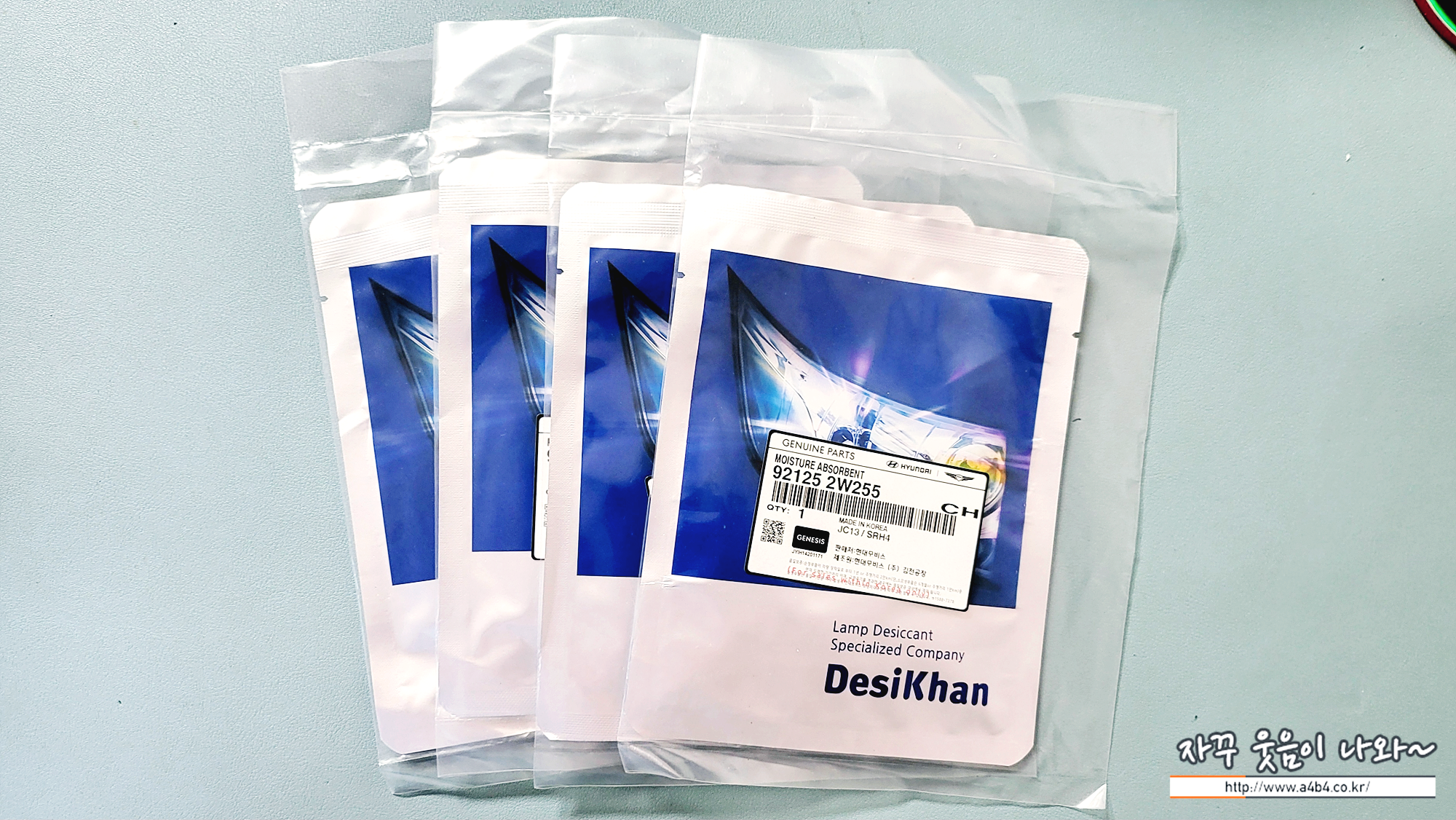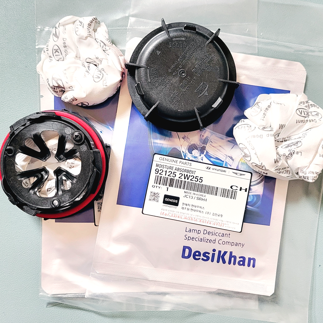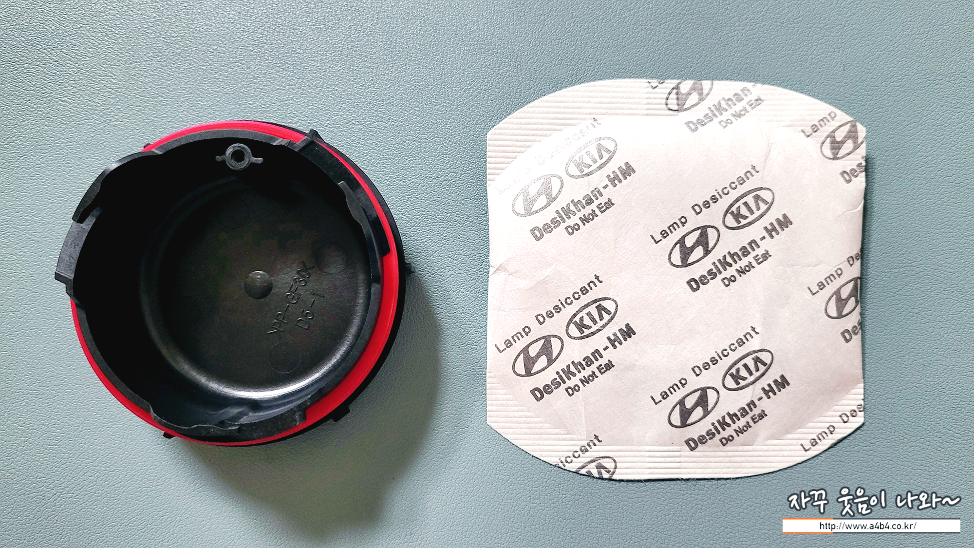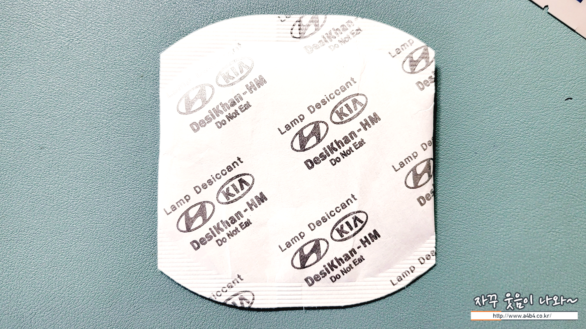 아래 사진속에 보이는 작은 손바닥만한 녀석이 바로 자동차 헤드라이트 습기를 제거해주는 모이스처 업소번트 입니다. 흡습제라고도 하는데요. 우리가 집에서도 사용하는 '물먹는하마'와 동일한 비슷한 제품으로 보이네요.