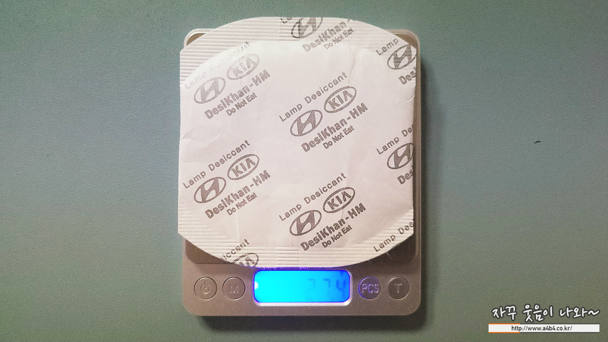 사용전 중량은 27,4그램입니다. 포장지 제외하면 용량 25그램 다 들어있는 것 같네요. 1년동안 쏘렌토 하이브리드 헤드라이트 습기 제거위해 산화한 녀석은 42.9그램으로 중량과 부피가 많이 증가 했습니다. 얼마나 딱딱한지 만약 던저서 머리 맞으로 피날 것 같네요.